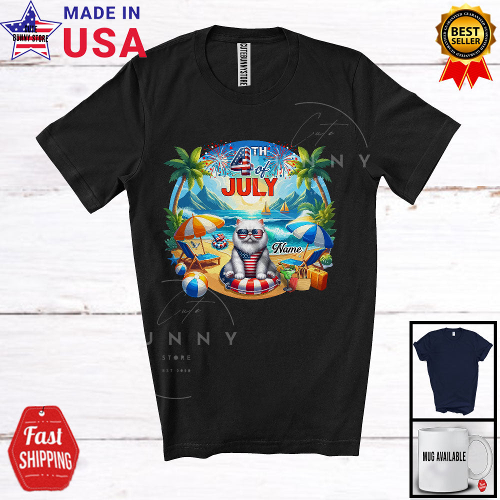 Personalized Custom Name 4th Of July, Lovely Summer Vacation Cat On Beach, Family T-Shirt
