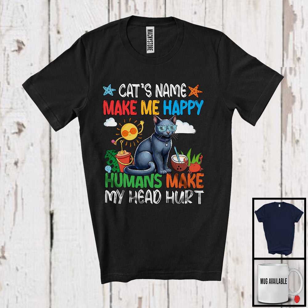 This Personalized Kitten's Custom Name Make Me Happy, Colorful Summer Vacation Russian Blue Owner T-Shirt is great idea gift for your family, friends in this birthday, christmas, mother's day, father's day, patrick's day or any holiday.