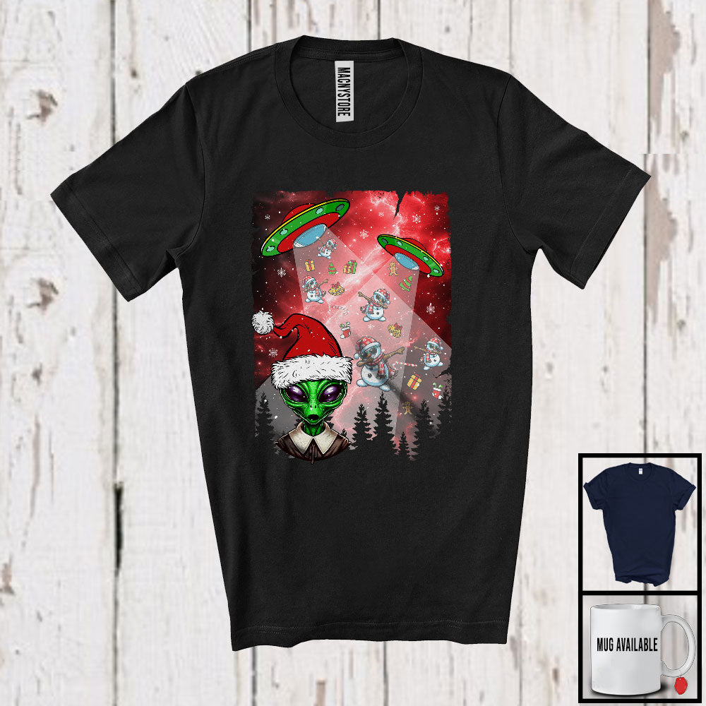 Alien UFO Stolen Snowman; Humorous Christmas Santa Alien Space Planet; X-mas Family T-Shirt