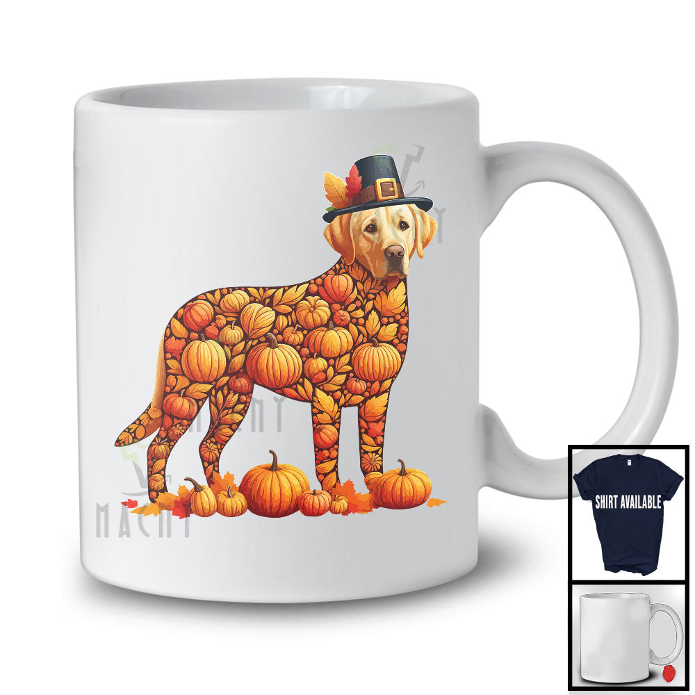 The Autumn Pumpkin Pilgrim Labrador Retriever Shape; Wonderful Thanksgiving Fall Leaves Dog Owner T-Shirt destined to impress, and priced at only $12.95, for a limited time.