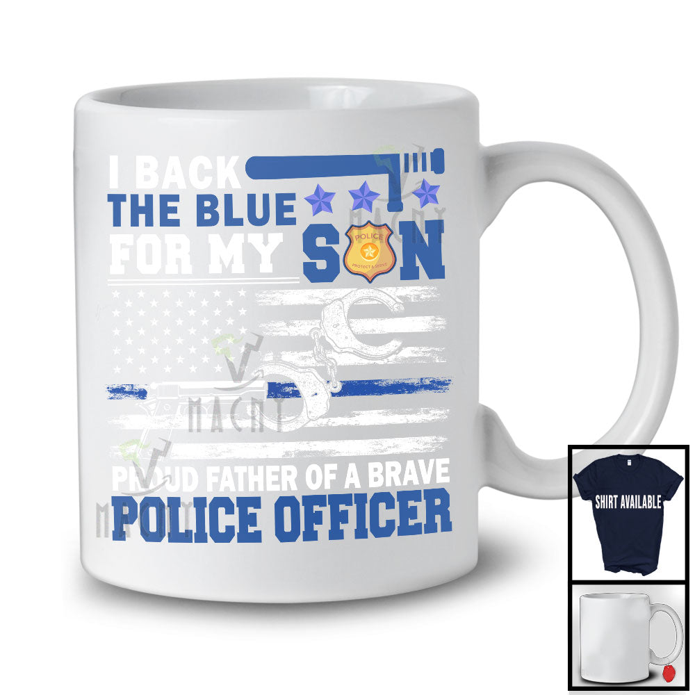The Back The Blue For My Son, Proud Father's Day American Flag Police Officer Dad, Family Group T-Shirt destined to impress, and priced at only $12.95, for a limited time.