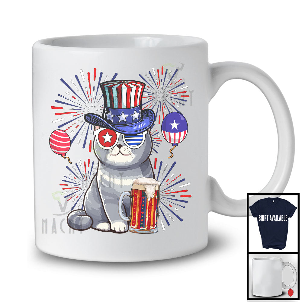 British Shorthair Drinking Beer, Awesome 4th Of July Fireworks Kitten, Drunker Patriotic Group T-Shirt
