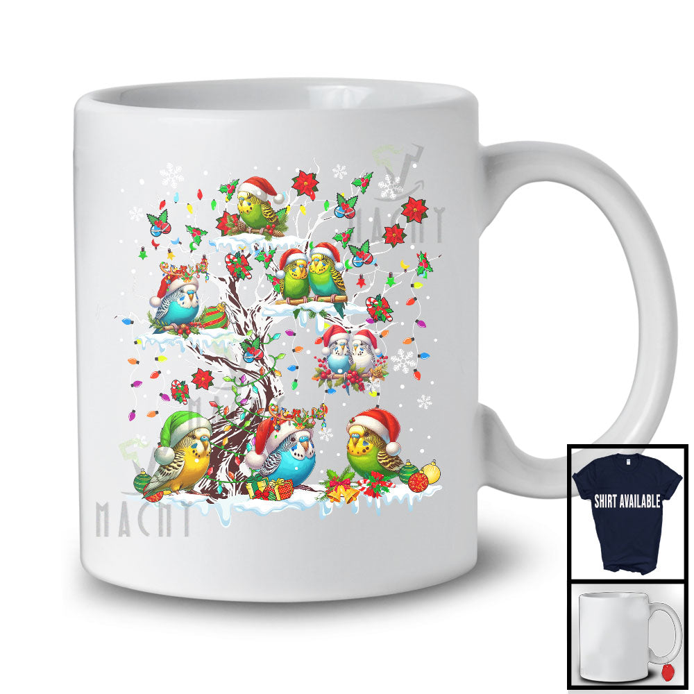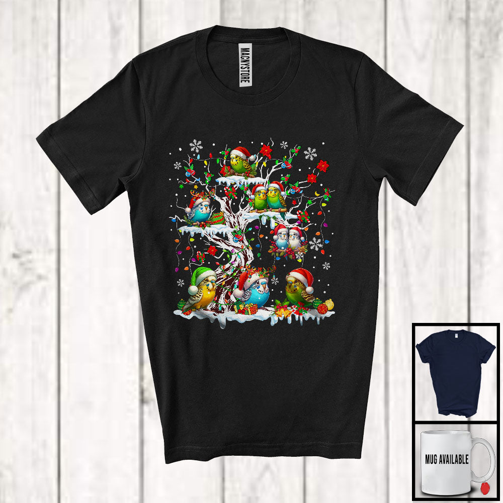 new MacnyStore - Budgie On Christmas Tree; Adorable X-mas Lights Santa Budgie Bird; Snowing Family Group T-Shirt – Macnystore