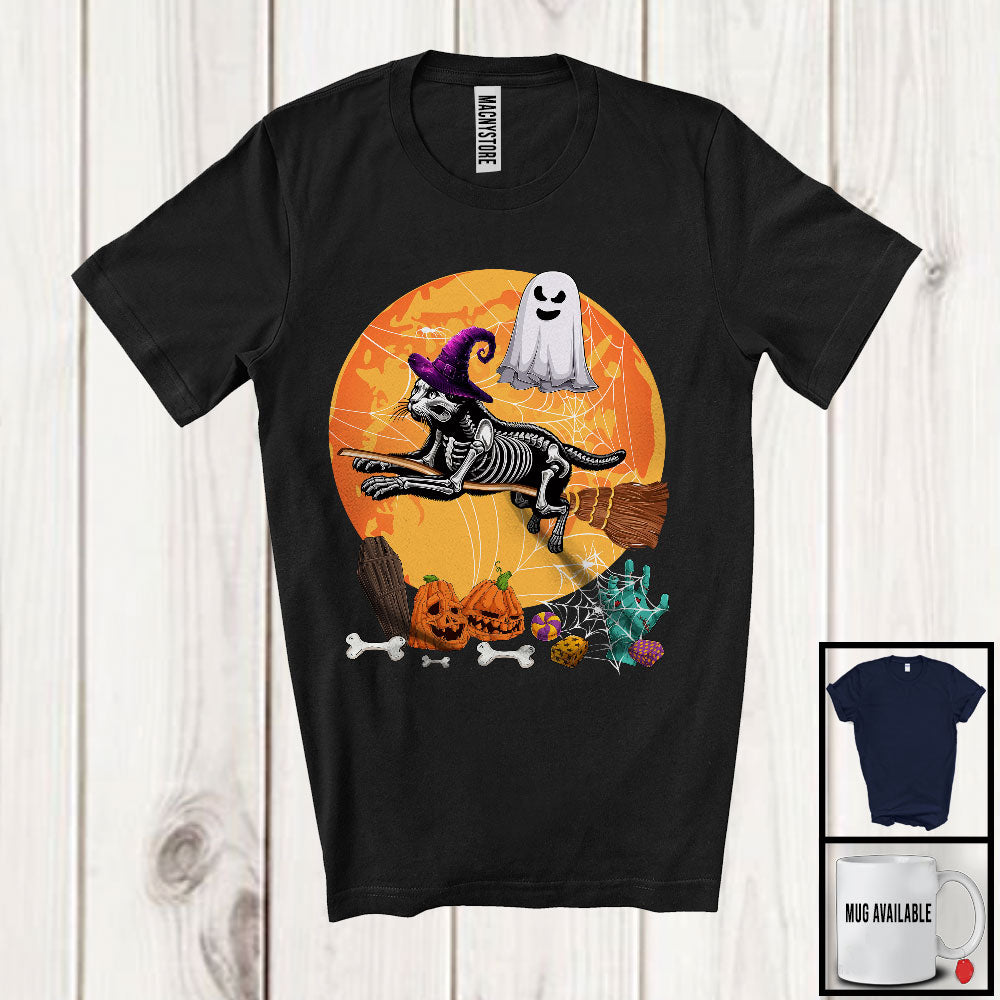 new MacnyStore - Cat Skeleton Witch On Broomstick, Humorous Halloween Costume Moon, Witch Boo Ghost Lover T-Shirt – Macnystore