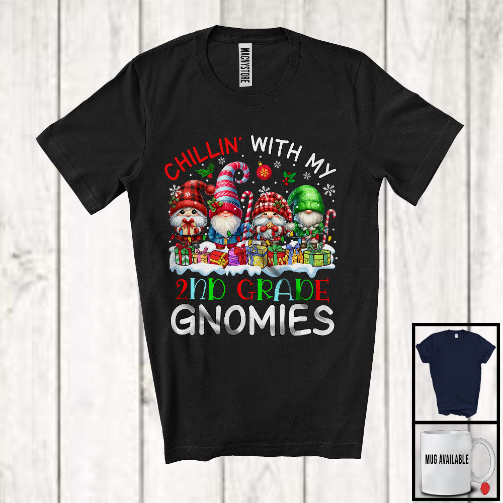 Chillin' With My 2nd Grade Gnomies; Lovely Christmas Lights Four Gnomes; Teacher Squad T-Shirt. This cotton t-shirt is a durable staple product with a classic fit. One of the most popular items, it has a relaxed style made for everyday and casual wear.
