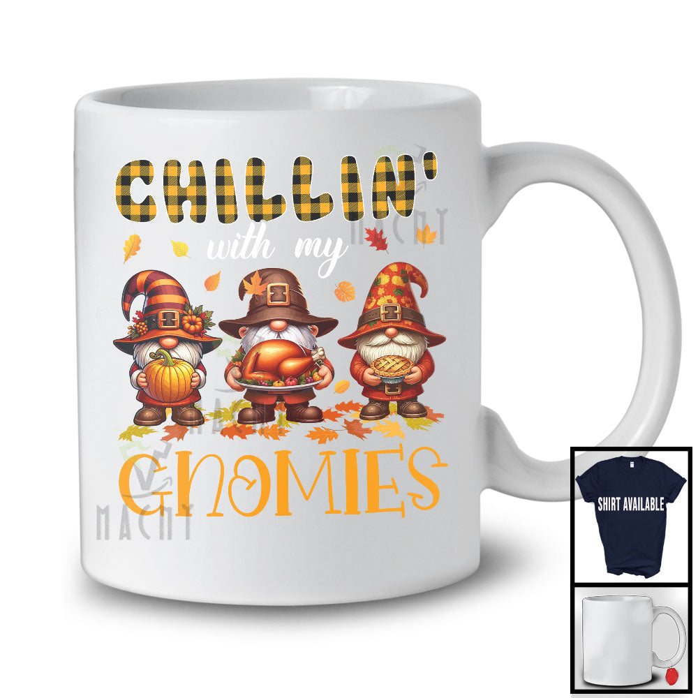 Chillin' With My Gnomies; Amazing Thanksgiving Plaid Three Gnomes; Fall Pumpkin Turkey Family T-Shirt. This cotton t-shirt is a durable staple product with a classic fit. One of the most popular items, it has a relaxed style made for everyday and casual wear.