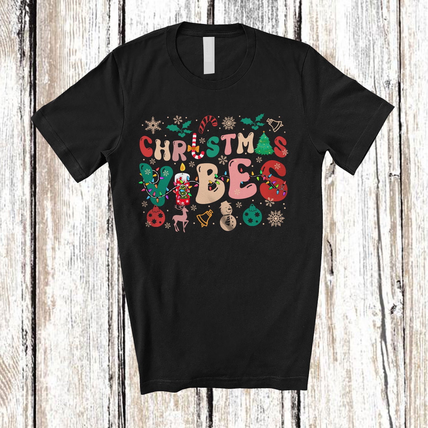• Christmas Vibes; Fantastic X-mas Lights Snowing Groovy; Christmas Pajamas Matching Family Group T-Shirt. This cotton t-shirt is a durable staple product with a classic fit. One of the most popular items, it has a relaxed style made for everyday and casual wear.
