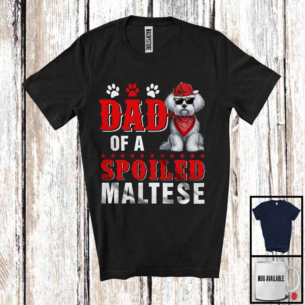 Dad Of A Spoiled Maltese, Awesome Father's Day Puppy Sunglasses, Matching Family Group T-Shirt. This cotton t-shirt is a durable staple product with a classic fit. One of the most popular items, it has a relaxed style made for everyday and casual wear.