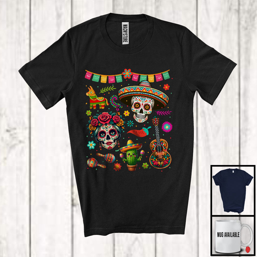 Dia De Los Muertos; Joyful Floral Flowers Hanging Skulls; Sombrero Cactus Mexican Lover T-Shirt