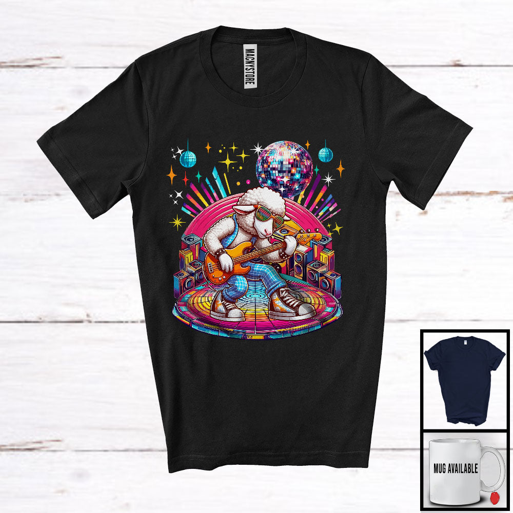 Disco Sheep Playing Guitar; Cheerful Farmer Guitarist Sheep Music Lover; Matching Wild Animal T-Shirt