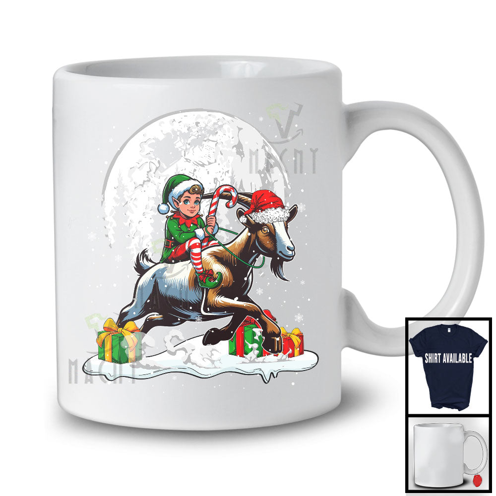 Elf Riding Goat Santa; Joyful Christmas Moon Elf Goat Lover; Farm Animal X-mas Farmer T-Shirt