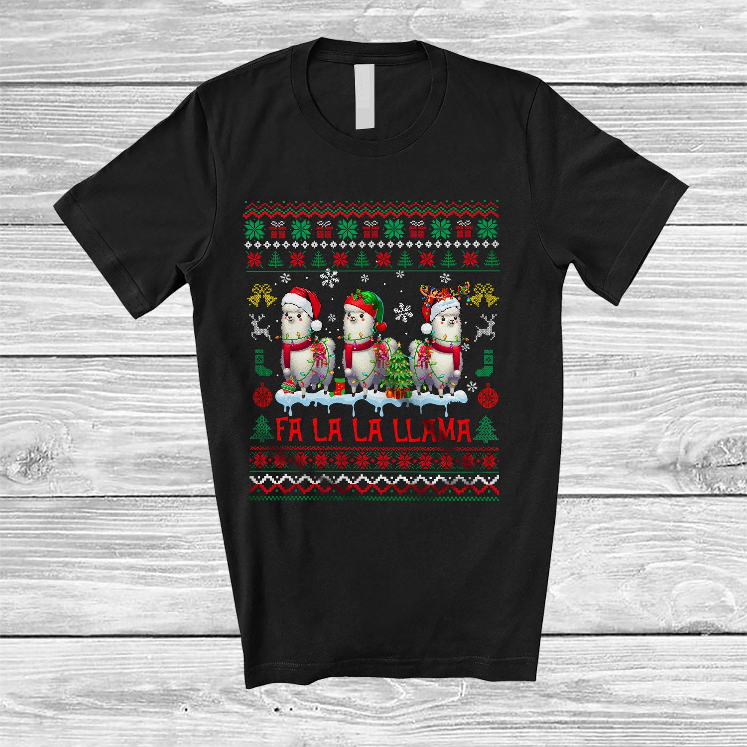 • Fa 3La Llama; Fantastic Christmas Sweater Three Santa Elf Reindeer Llama; Snowing Family T-Shirt. This cotton t-shirt is a durable staple product with a classic fit. One of the most popular items, it has a relaxed style made for everyday and casual wear.