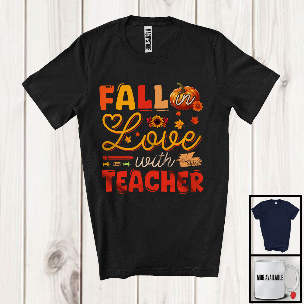 Fall In Love With Teacher; Wonderful Thanksgiving Autumn Pumpkin; Jobs Careers Proud T-Shirt. This cotton t-shirt is a durable staple product with a classic fit. One of the most popular items, it has a relaxed style made for everyday and casual wear.