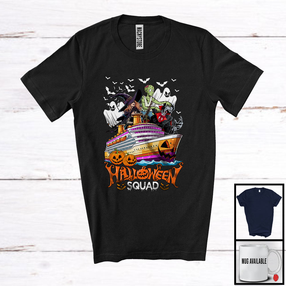 • Halloween Squad; Scary Halloween Costume Witch Zombie On Cruise Ship; Family Group T-Shirt. This cotton t-shirt is a durable staple product with a classic fit. One of the most popular items, it has a relaxed style made for everyday and casual wear.