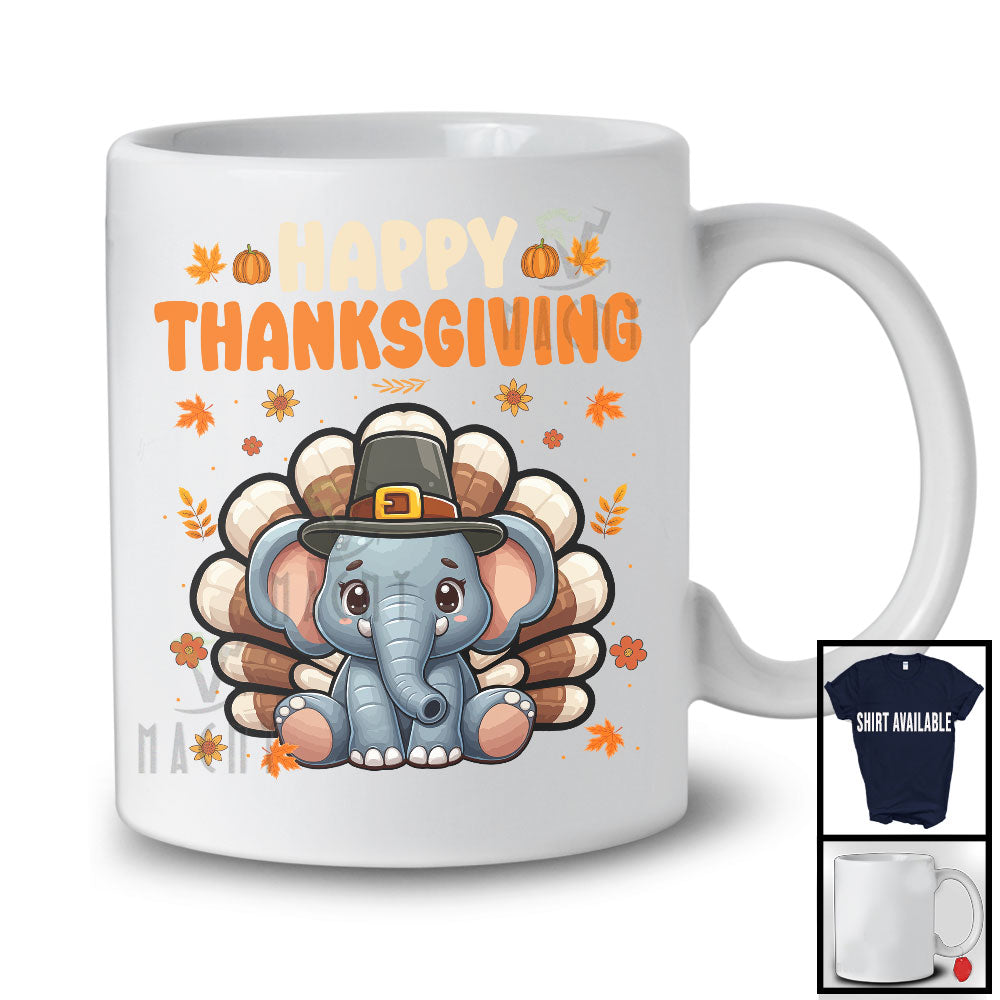 Happy Thanksgiving, Lovely Pilgrim Turkey Elephant Matching Wild Animal Lover, Fall Leaves T-Shirt