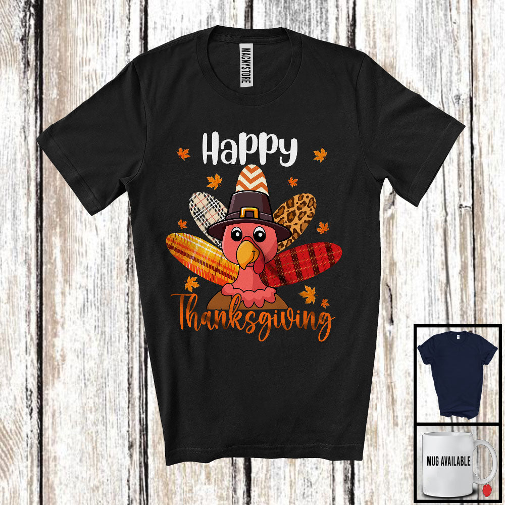 Happy Thanksgiving; Wonderful Thanksgiving Fall Leaves Turkey Plaid Tail; Family Group T-Shirt. This cotton t-shirt is a durable staple product with a classic fit. One of the most popular items, it has a relaxed style made for everyday and casual wear.