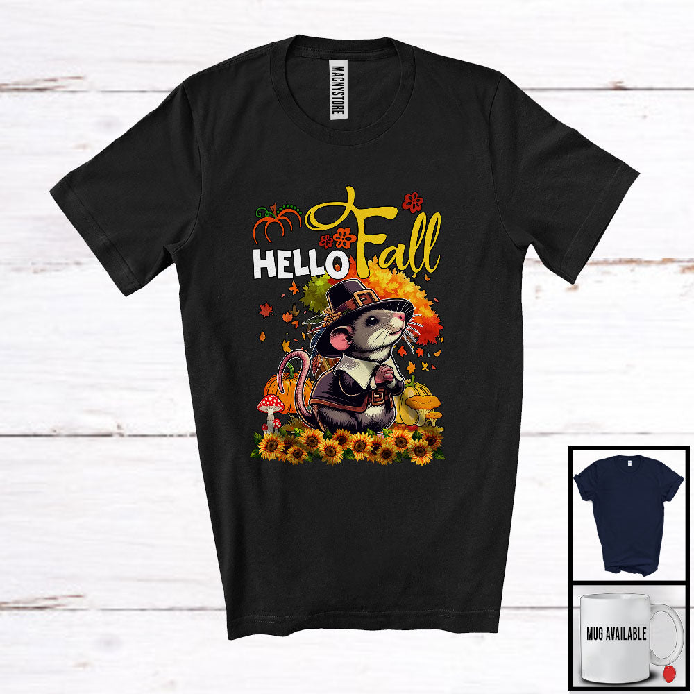 Hello Fall; Lovely Thanksgiving Rat With Autumn Tree Pumpkin; Animal Lover Family Group T-Shirt