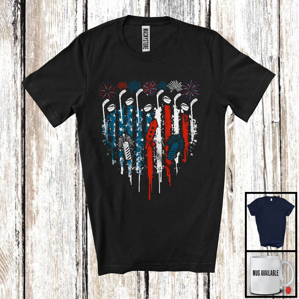 Hockey Heart Shape American Flag, Awesome 4th Of July Hockey Player Lover, Patriotic Group T-Shirt
