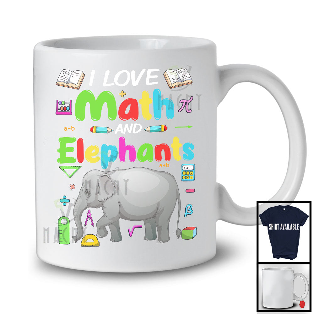 I Love Math And Elephants, Colorful Elephants Animal Lover, Matching Math Teacher Student Team T-Shirt
