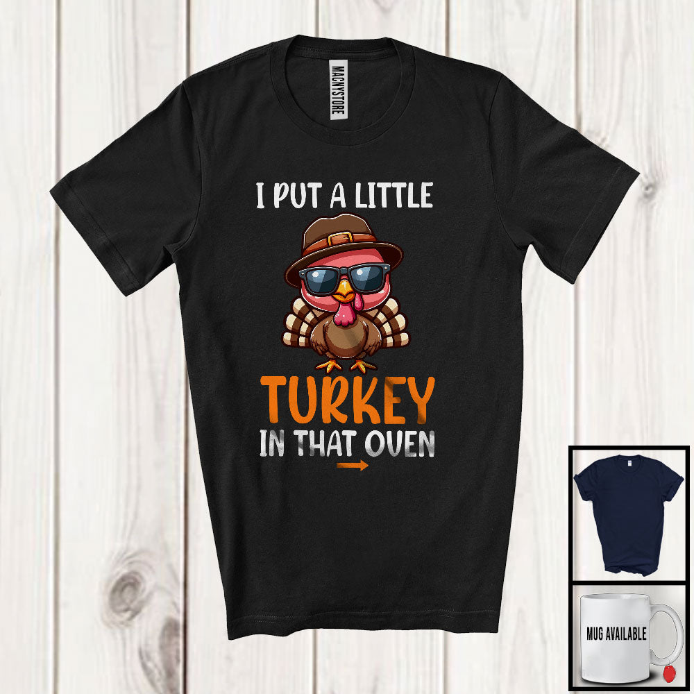 I Put A Little Turkey In That Oven; Amazing Pregnancy Thanksgiving Turkey Sunglasses; Daddy Family T-Shirt. This cotton t-shirt is a durable staple product with a classic fit. One of the most popular items, it has a relaxed style made for everyday and casual wear.