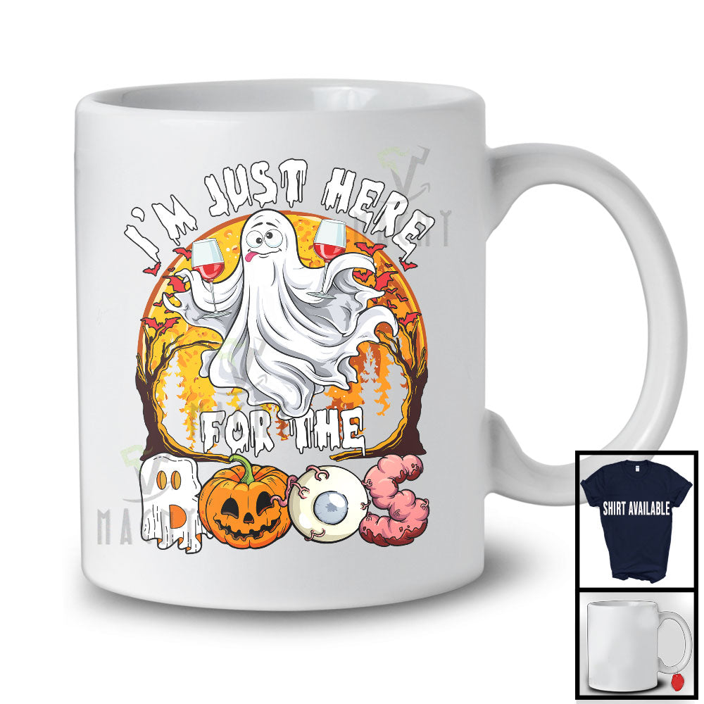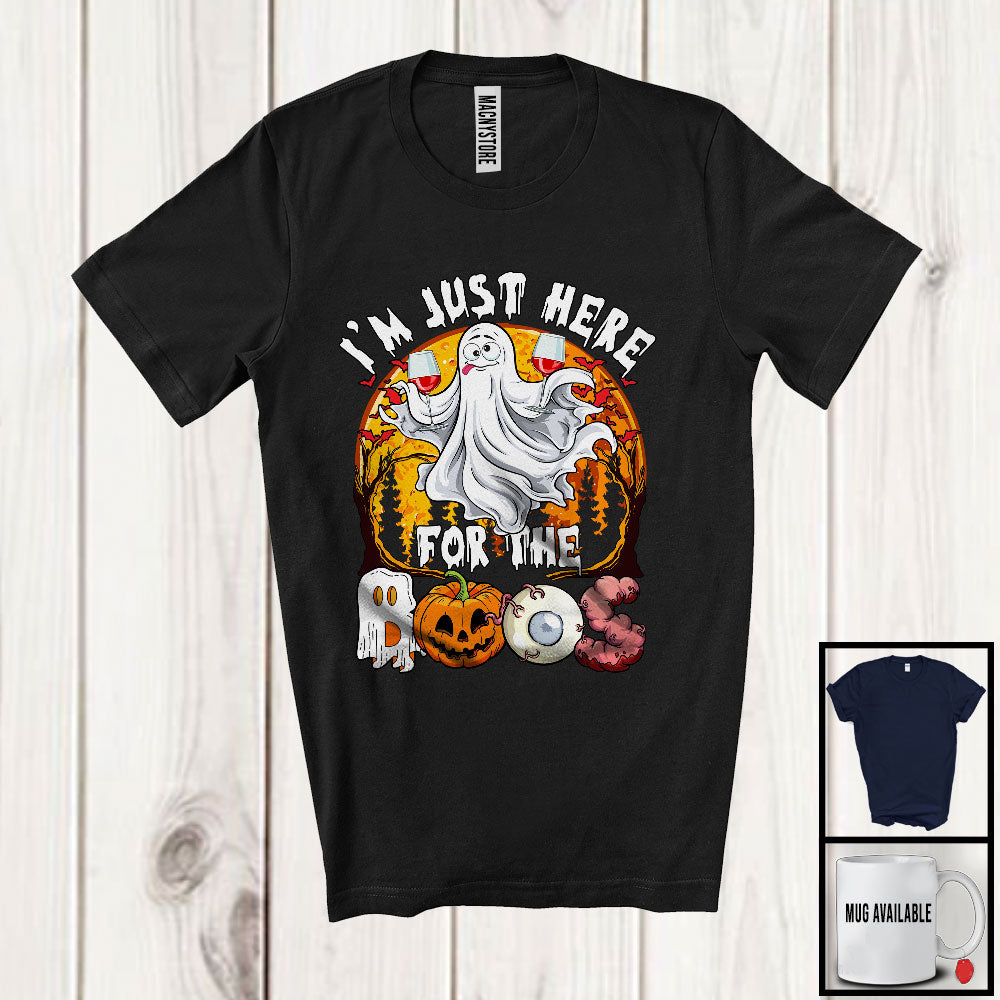new MacnyStore - I'm Just Here For The Boos; Awesome Halloween Moon Boo Ghost Drinking Wine; Drunker Team T-Shirt – Macnystore