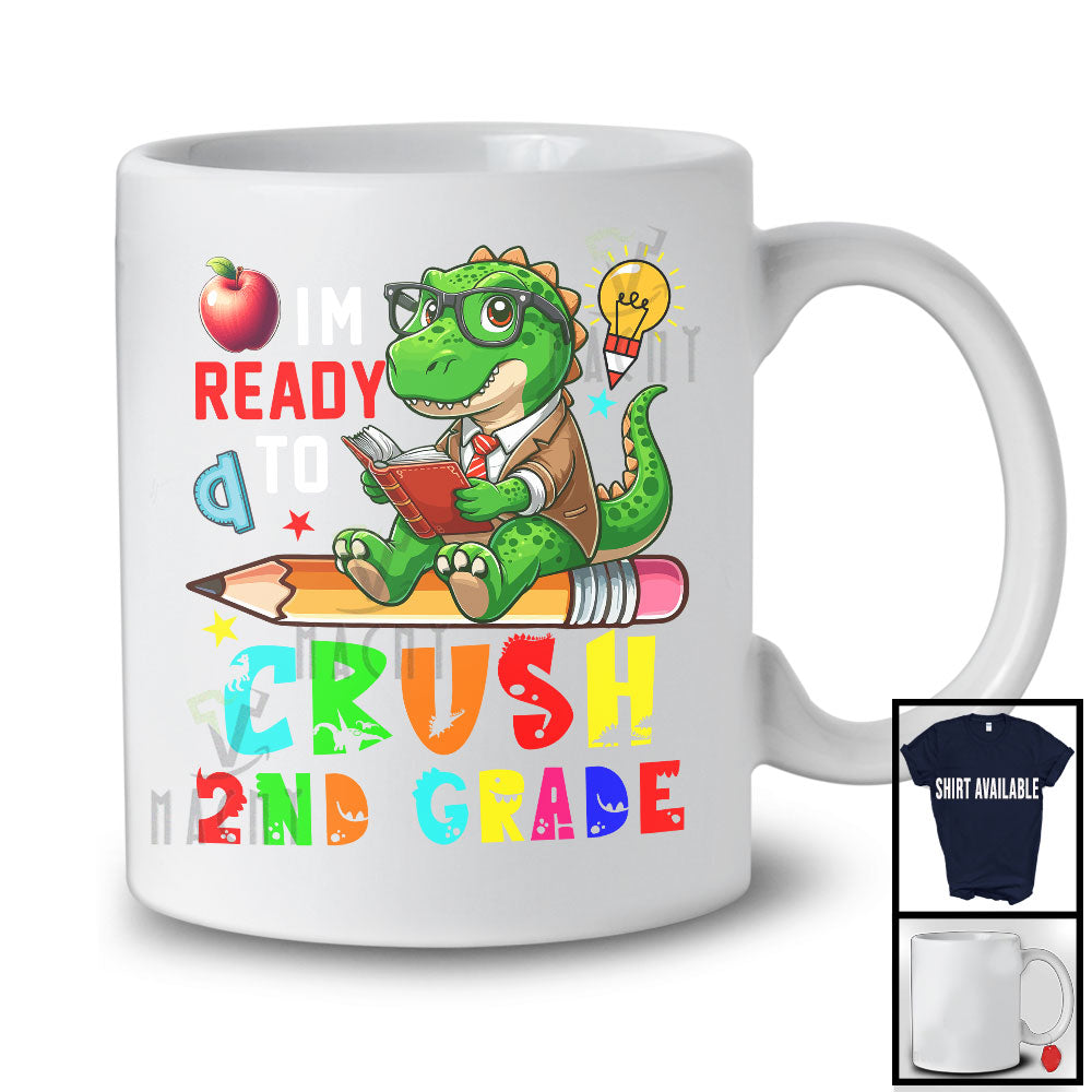 I'm Ready To Crush 2nd Grade, Lovely First Day Of School T-Rex Reading Books, Dinosaur T-Shirt