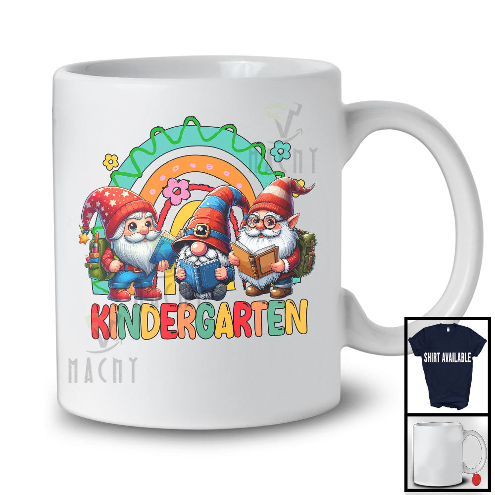 Kindergarten; Adorable Three Gnomes Gnomies Teaching Squad; Students Teacher Group T-Shirt. This cotton t-shirt is a durable staple product with a classic fit. One of the most popular items, it has a relaxed style made for everyday and casual wear.