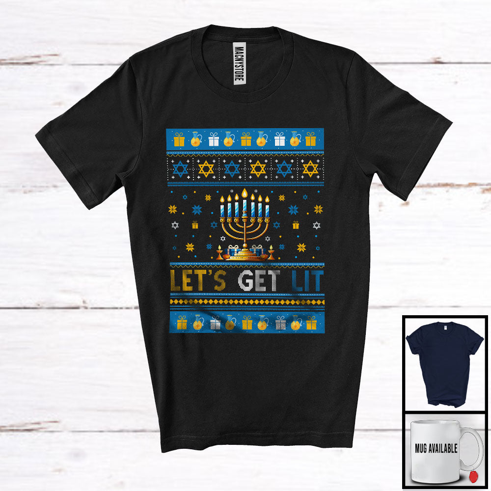 new MacnyStore - Let's Get Lit; Joyful Hanukkah Chanukah Proud Family; Sweater Menorah Lights Dreidel T-Shirt – Macnystore