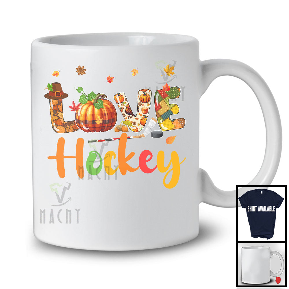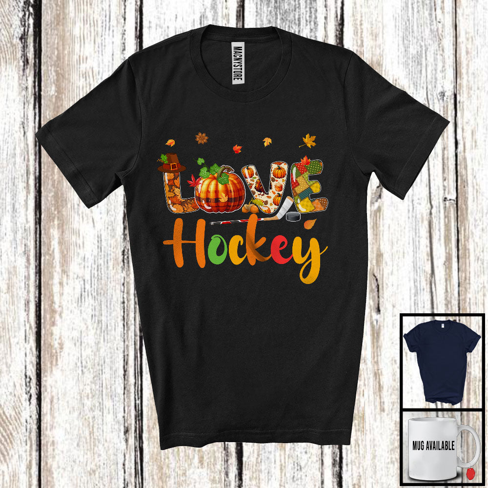 LOVE Hockey; Adorable Thanksgiving Plaid Pumpkin Fall; Matching Hockey Player Group T-Shirt