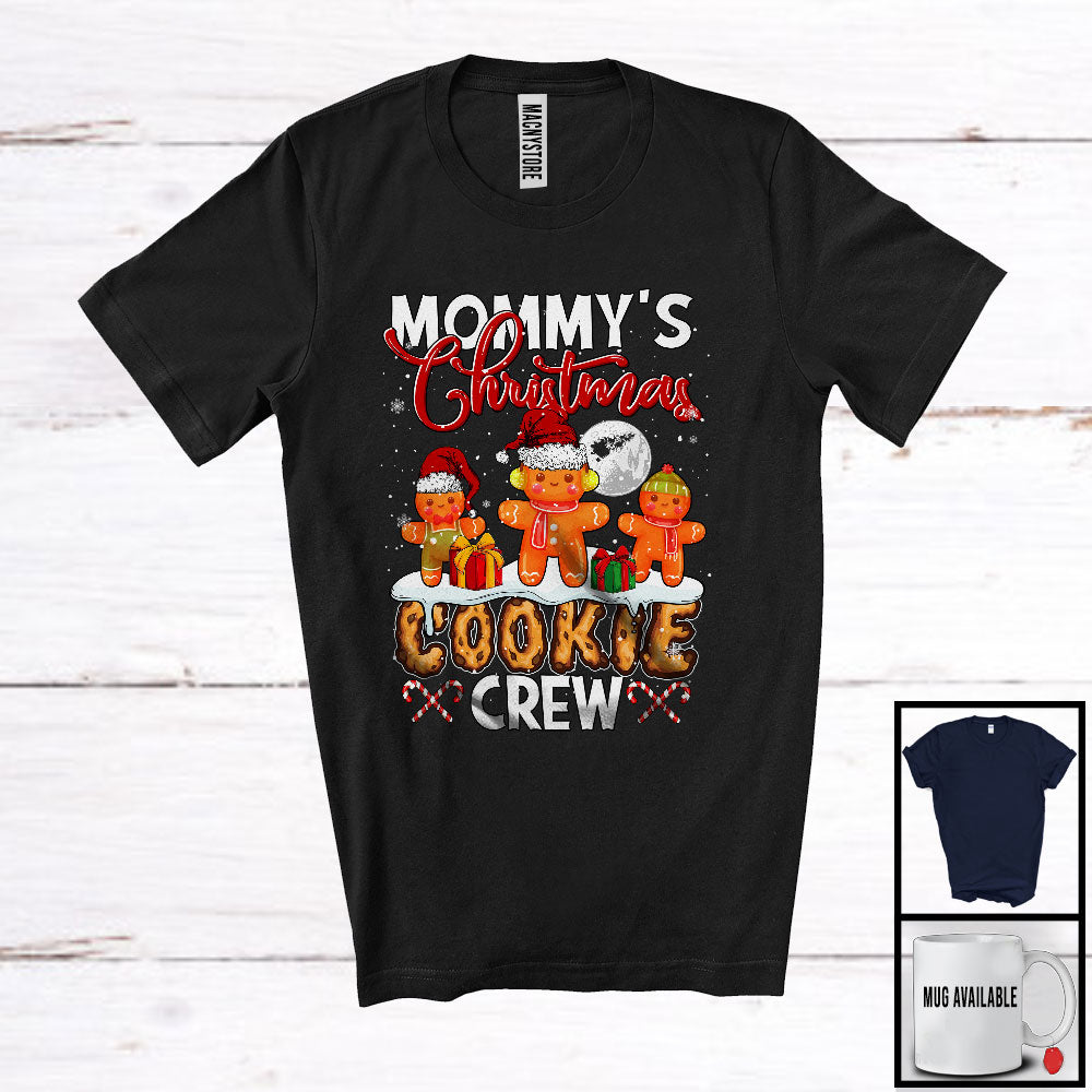 Mommy's Christmas Cookie Crew; Humorous X-mas Three Santa Gingerbreads; Moon Family Group T-Shirt