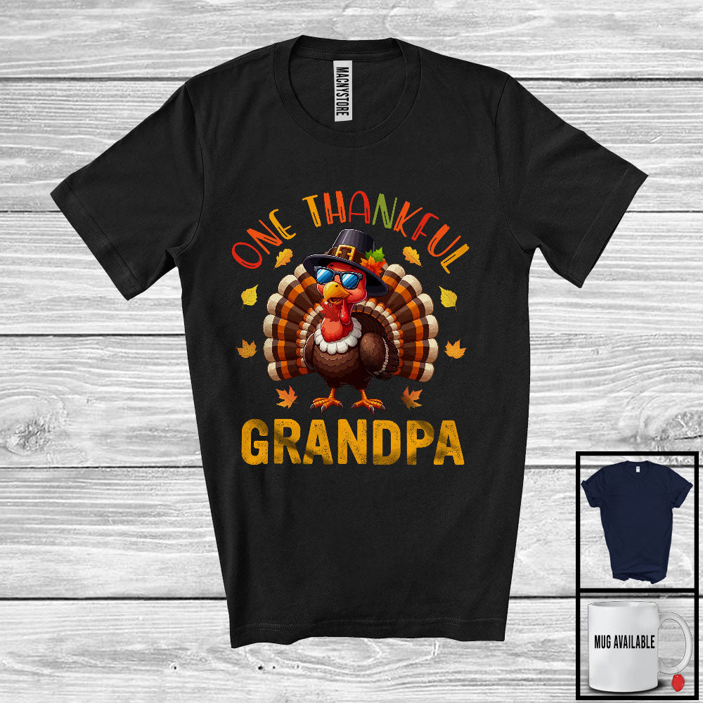 One Thankful Grandpa; Amazing Thanksgiving Turkey Sunglasses; Matching Family Group T-Shirt. This cotton t-shirt is a durable staple product with a classic fit. One of the most popular items, it has a relaxed style made for everyday and casual wear.
