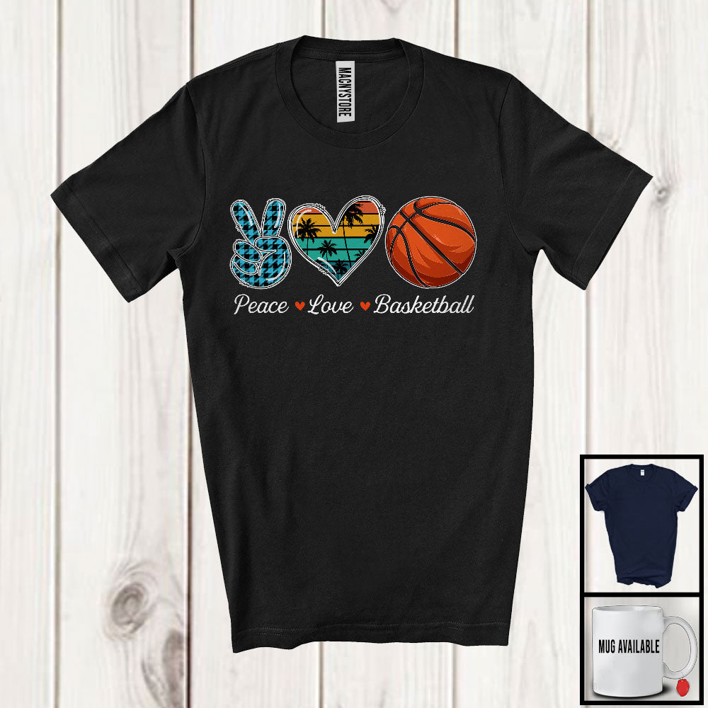 Peace Love Basketball, Adorable Peace Hand Sign Plaid Retro Heart, Basketball Player Matching Team T-Shirt