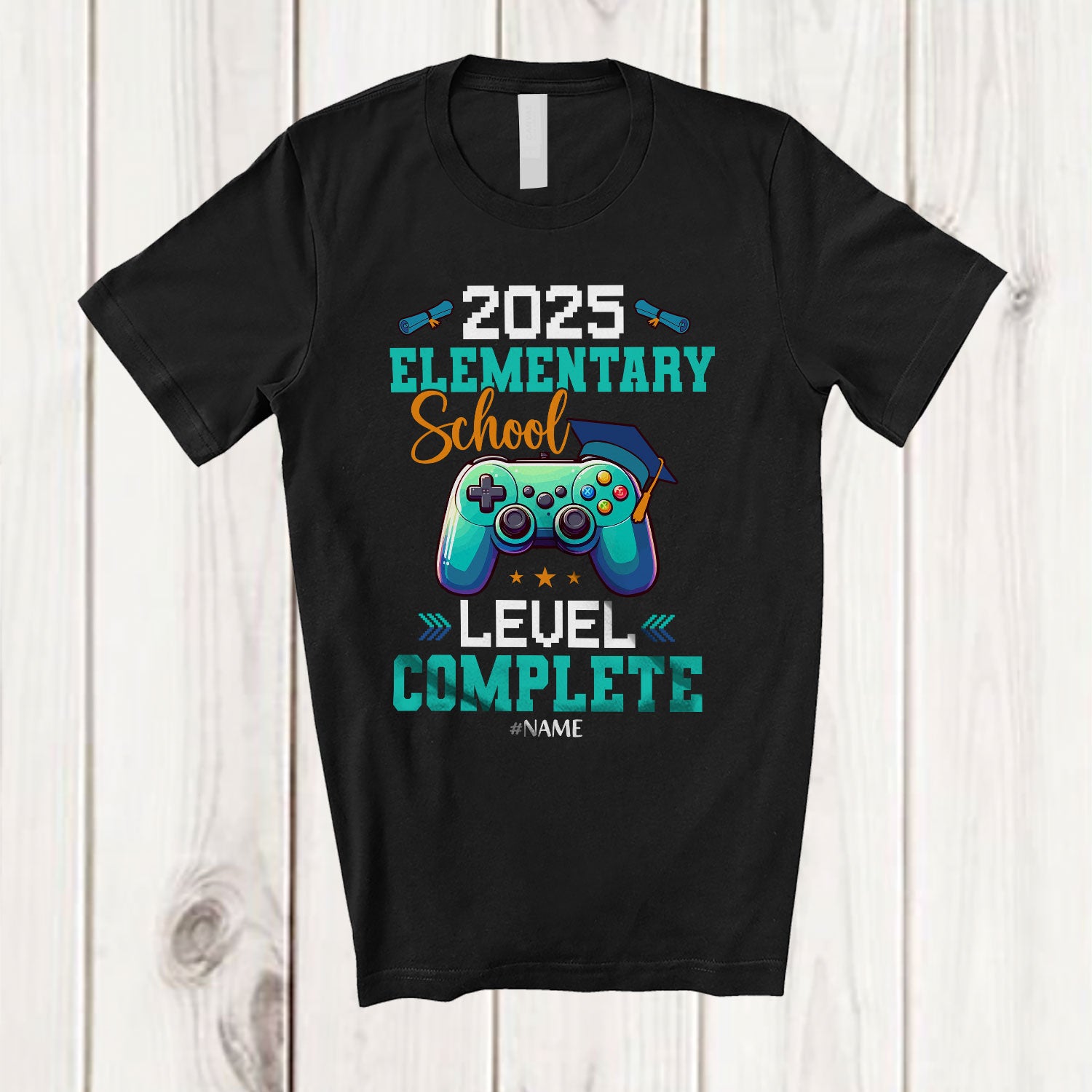 Personalized 2025 Elementary School Complete; Joyful Graduation Summer Custom Name Gamer T-Shirt