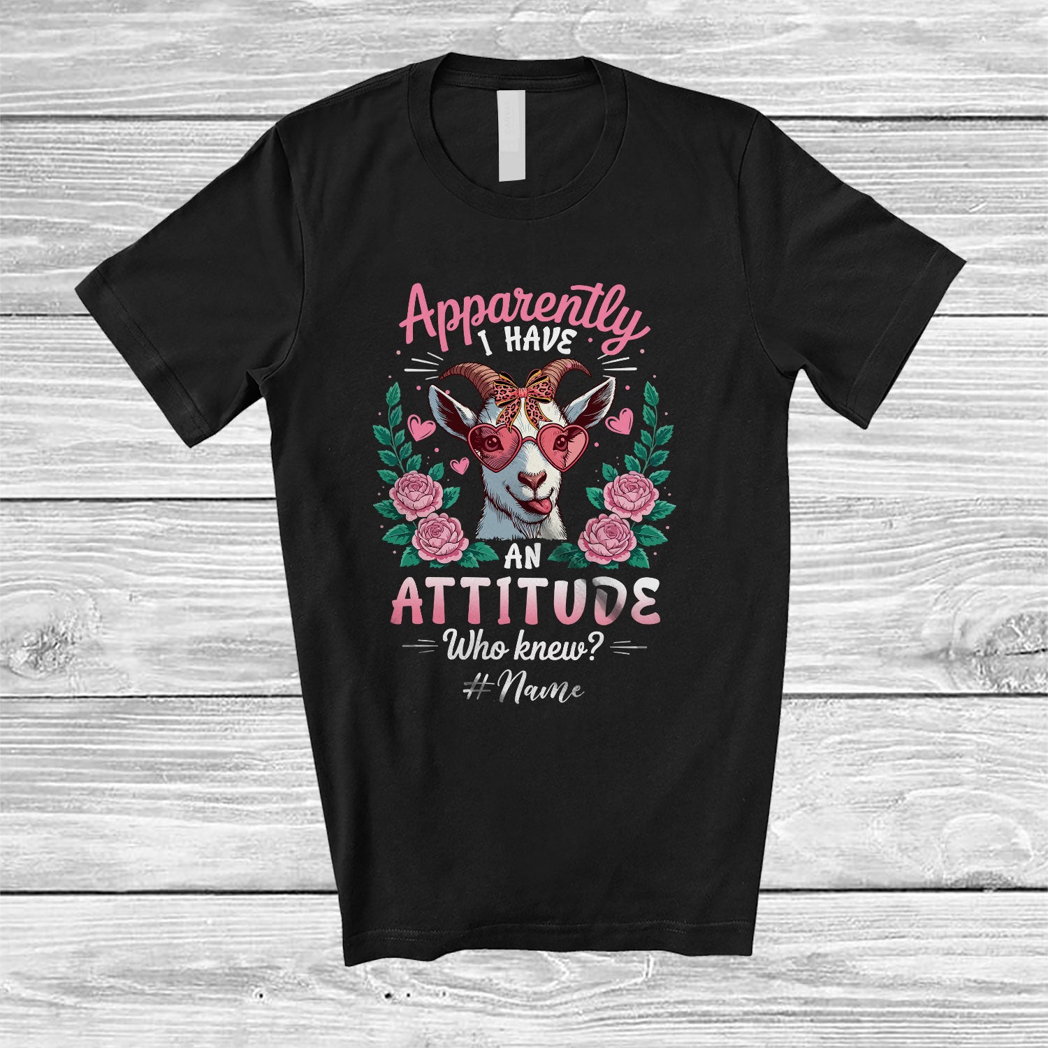 Personalized Apparently I Have An Attitude; Lovely Floral Flowers Goat Custom Name Farmer T-Shirt