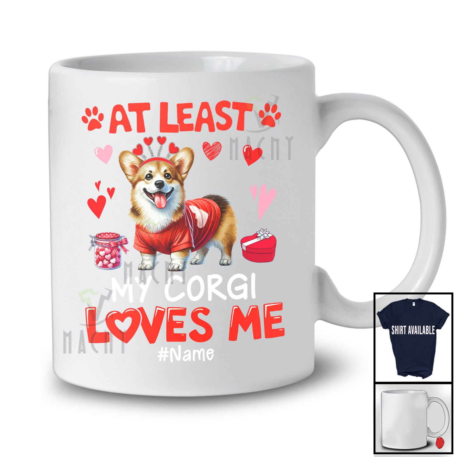 new MacnyStore - Personalized At Least My Corgi Loves Me; Lovely Valentine Hearts; Custom Name Single Family T-Shirt – Macnystore
