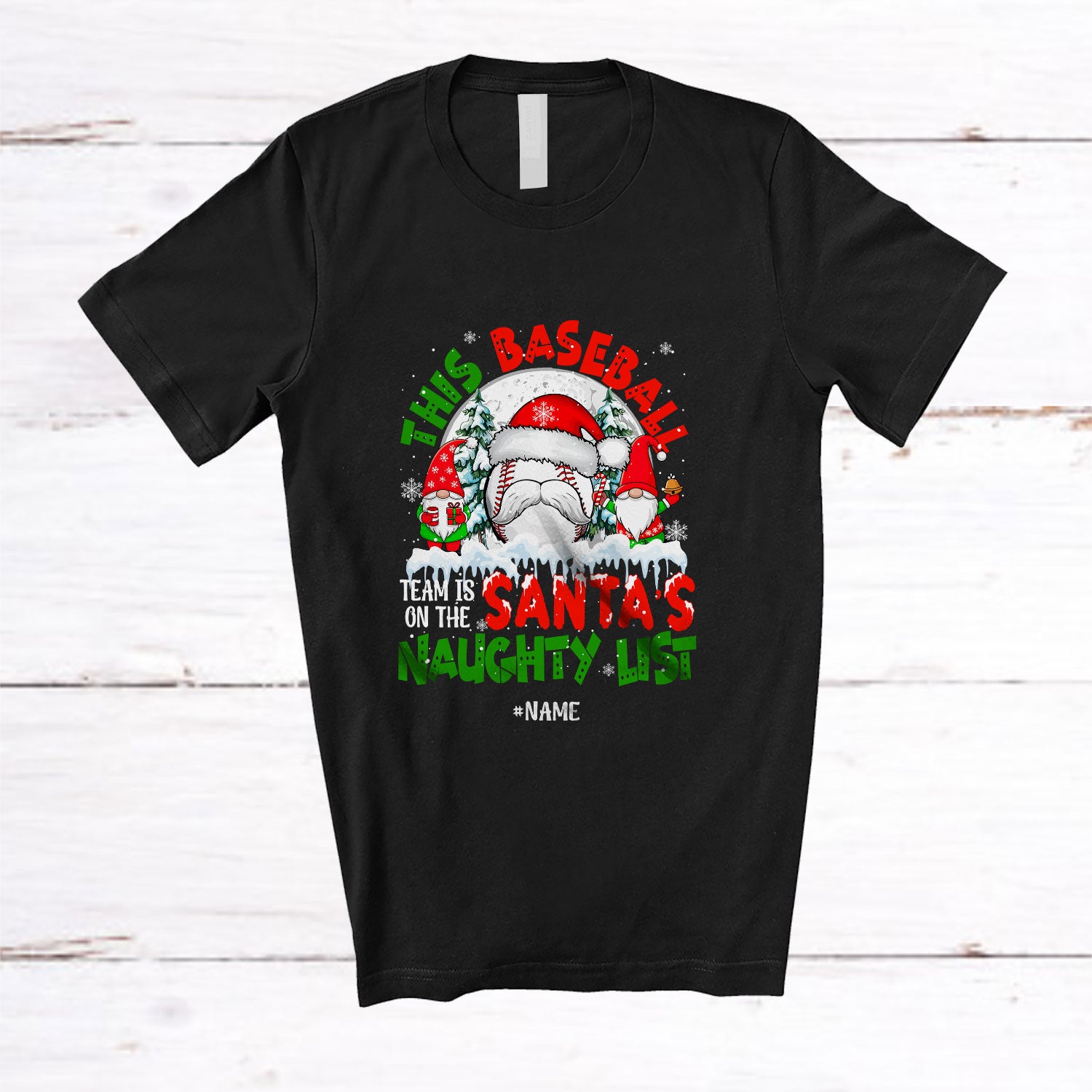 Personalized Baseball Team On Santa's Naughty List; Joyful Christmas Custom Name Player T-Shirt