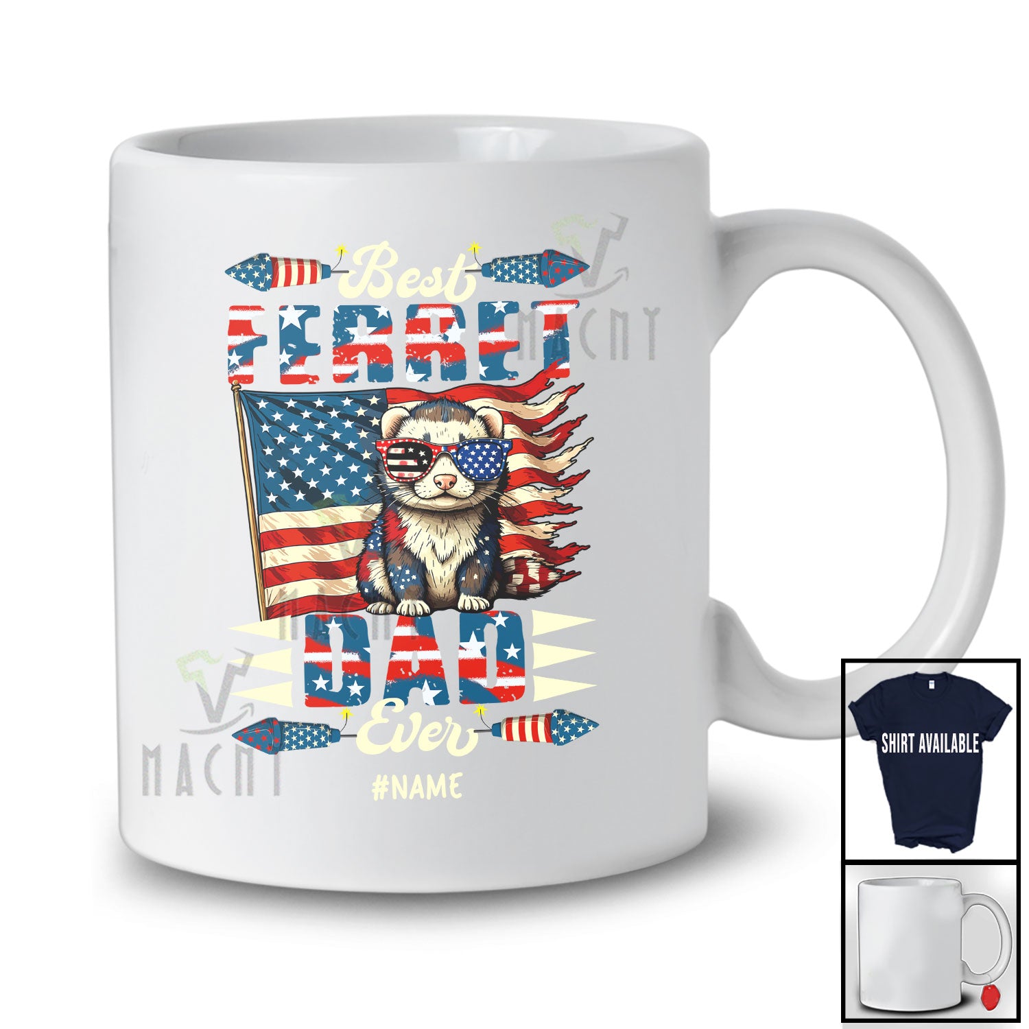 Personalized Best Ferret Dad Ever; Happy 4th Of July US Flag; Custom Name Patriotic Family T-Shirt