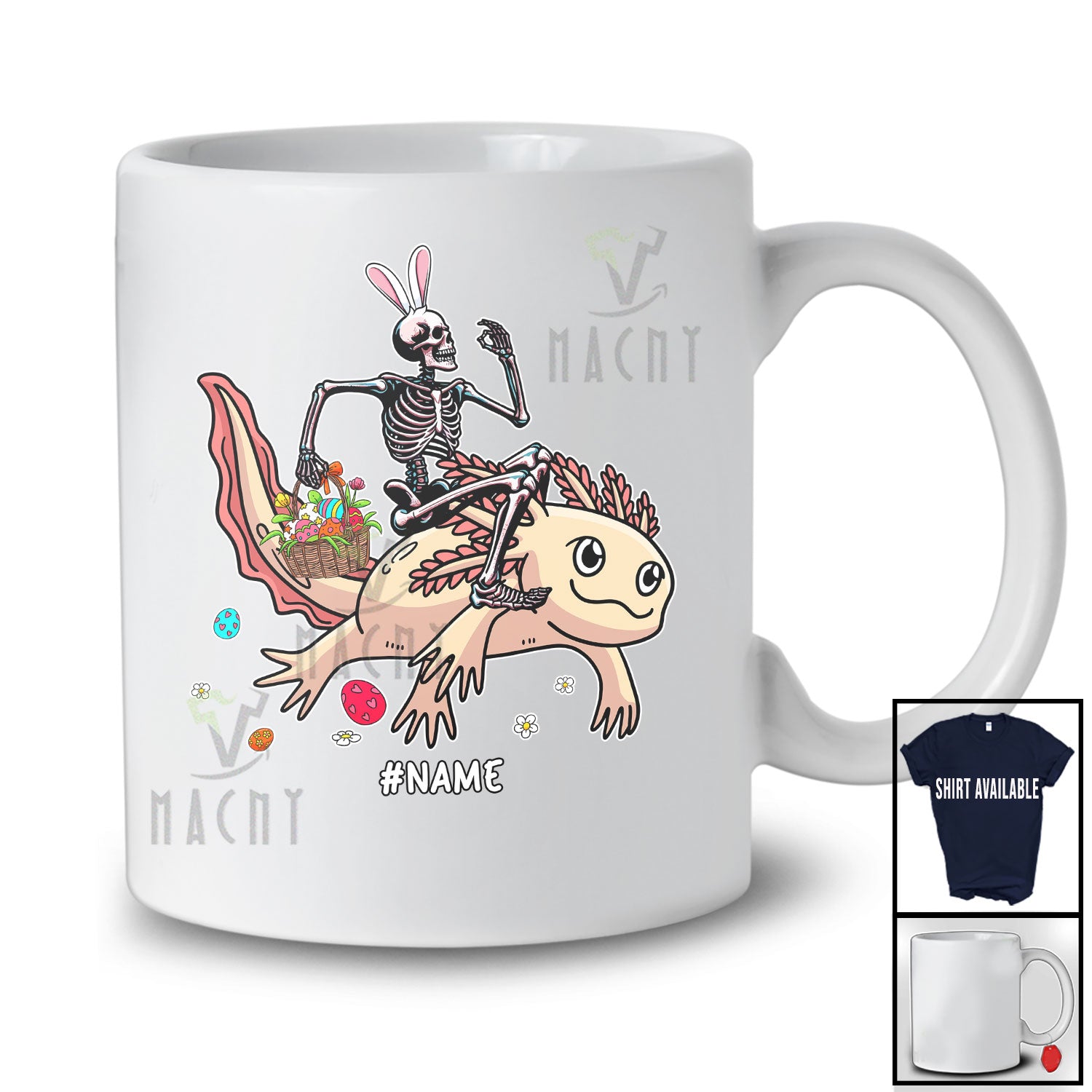new MacnyStore - Personalized Bunny Skeleton Riding Axolotl; Humorous Easter Eggs Hunting; Custom Name Family T-Shirt – Macnystore