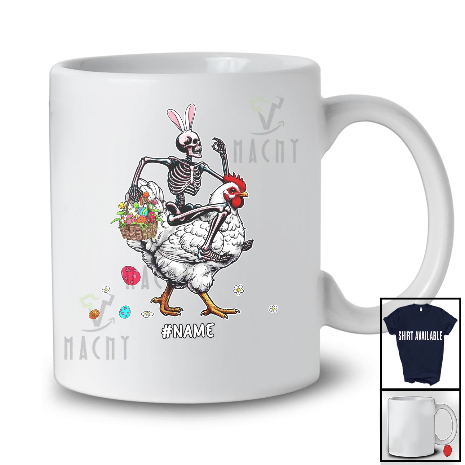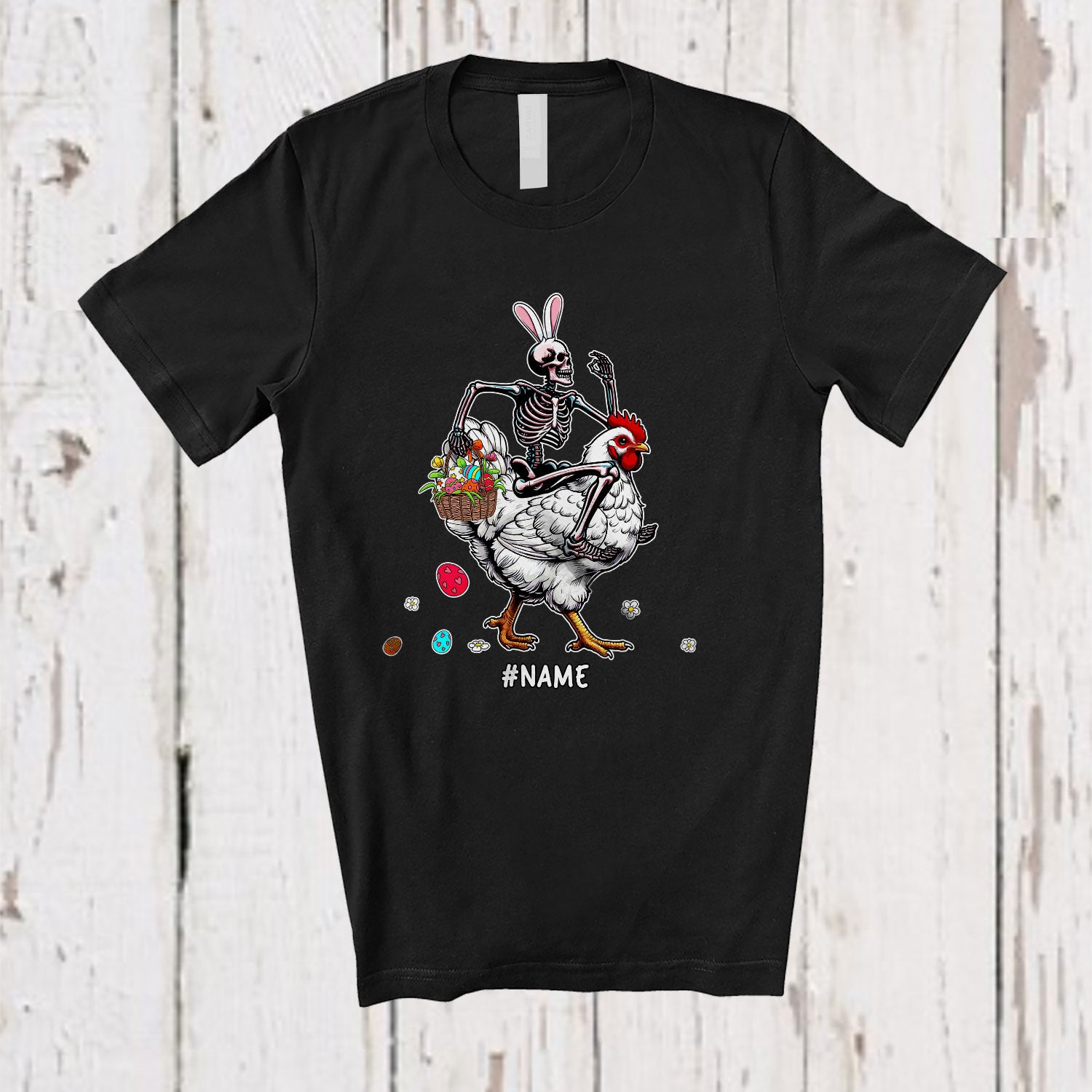 Personalized Bunny Skeleton Riding Chicken; Humorous Easter Eggs Hunting; Custom Name Family T-Shirt
