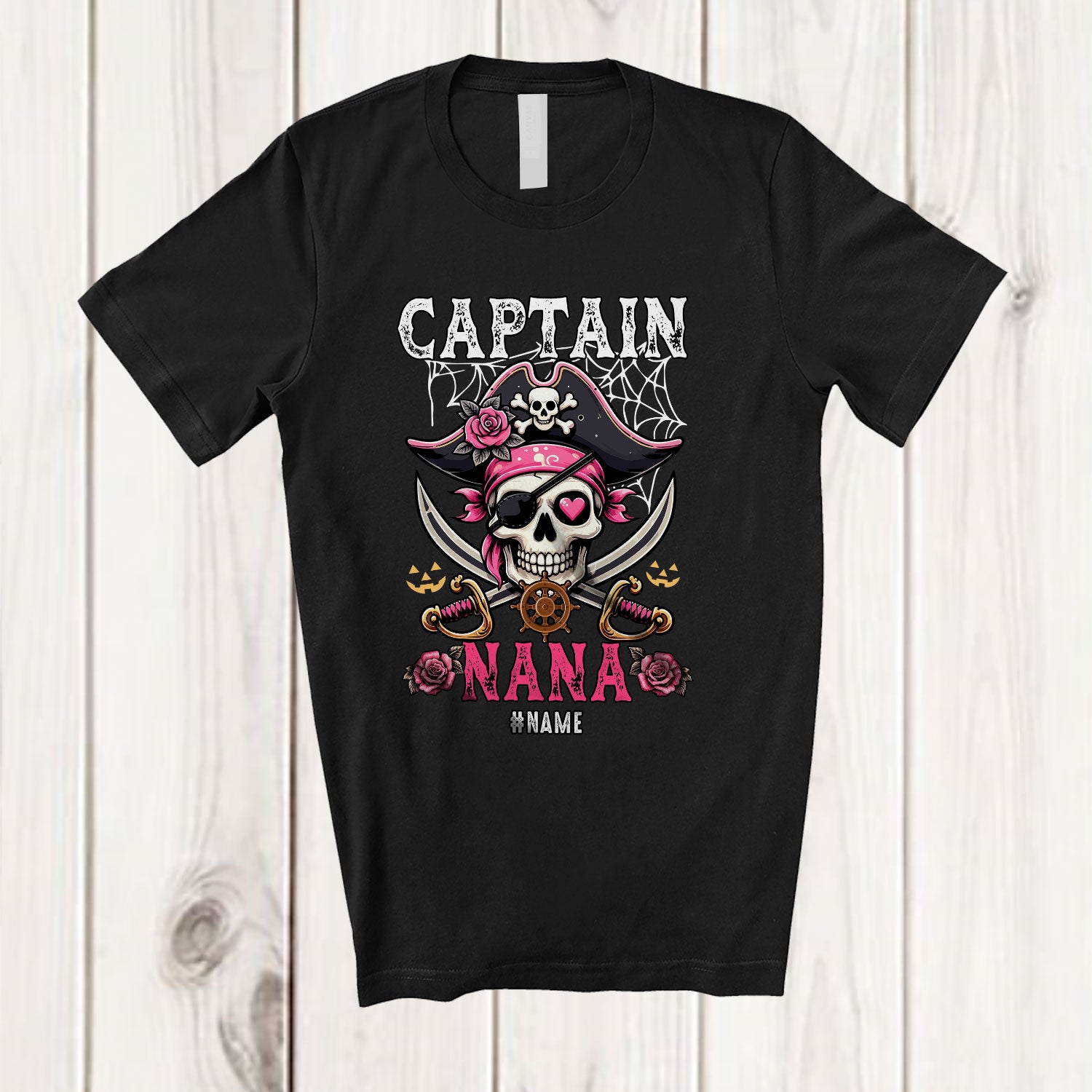 Personalized Captain Nana; Amazing Halloween Costume Pirate Skull; Custom Name Family T-Shirt