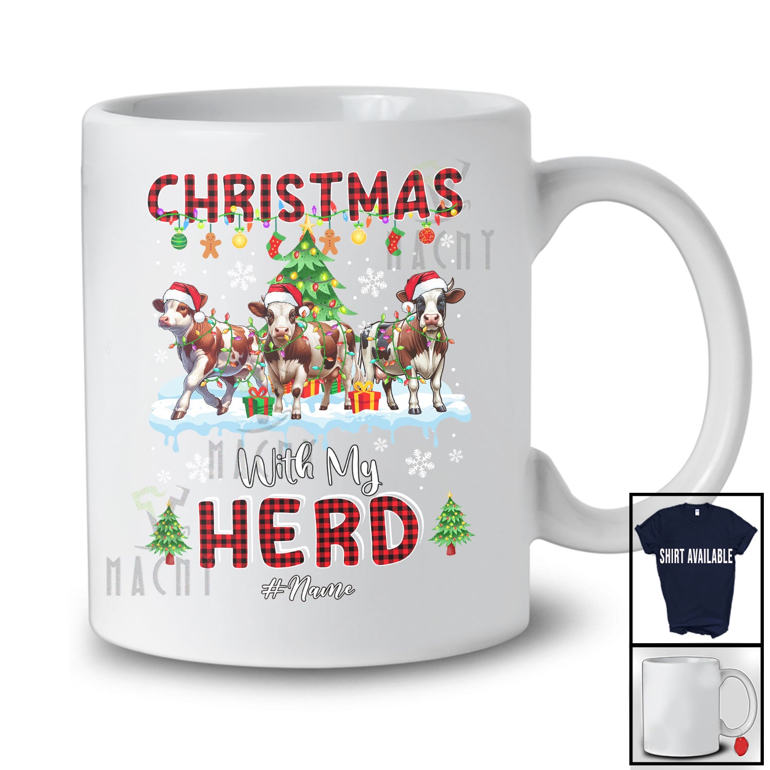 The Personalized Christmas With My Herd; Fantastic X-mas Plaid Three Santa Cow; Custom Name Farmer T-Shirt is far and away, one of our most popular items. People can't seem to get enough of it.