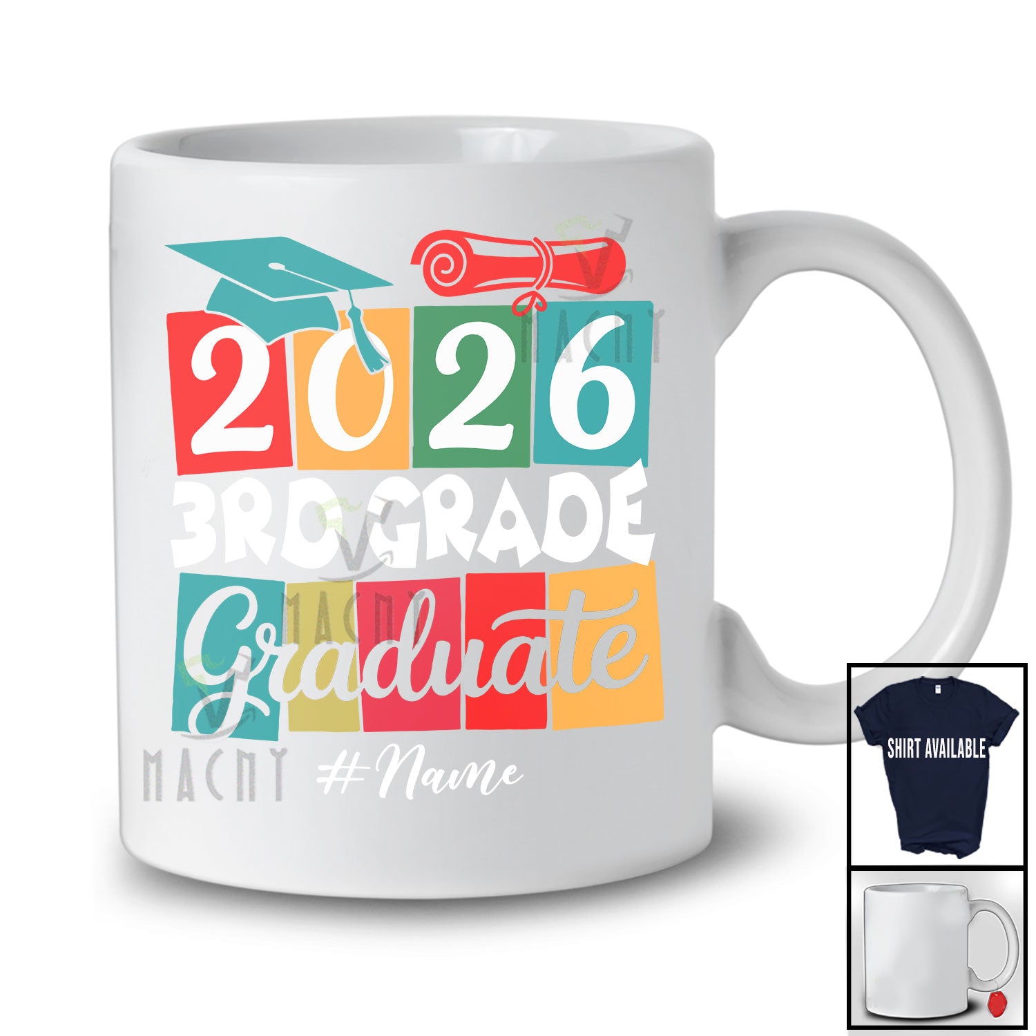 Personalized Custom Name 2026 3rd Grade Graduate; Lovely Summer Vacation Last Day Of School T-Shirt. This cotton t-shirt is a durable staple product with a classic fit. One of the most popular items, it has a relaxed style made for everyday and casual wear.