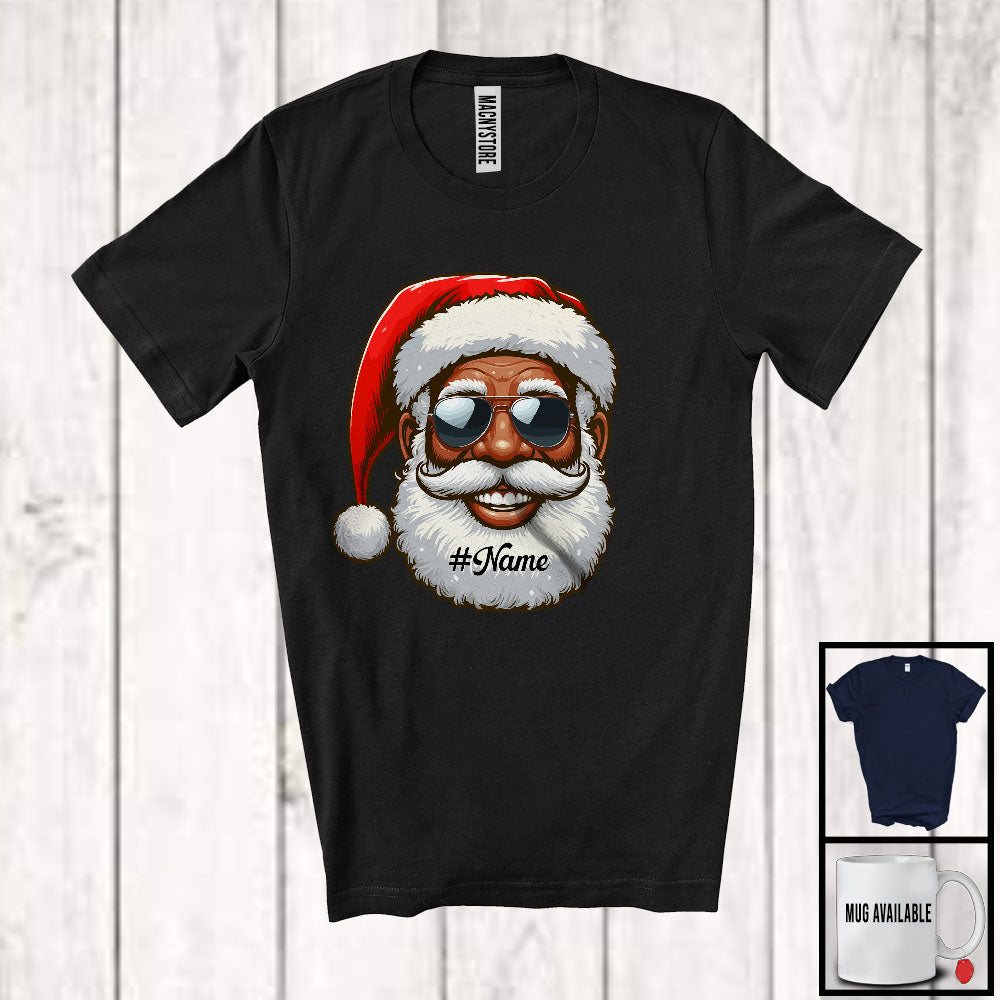 • Personalized Custom Name African Man Face Santa; Lovely Christmas Pajama; Afro African Family T-Shirt. This cotton t-shirt is a durable staple product with a classic fit. One of the most popular items, it has a relaxed style made for everyday and casual wear.