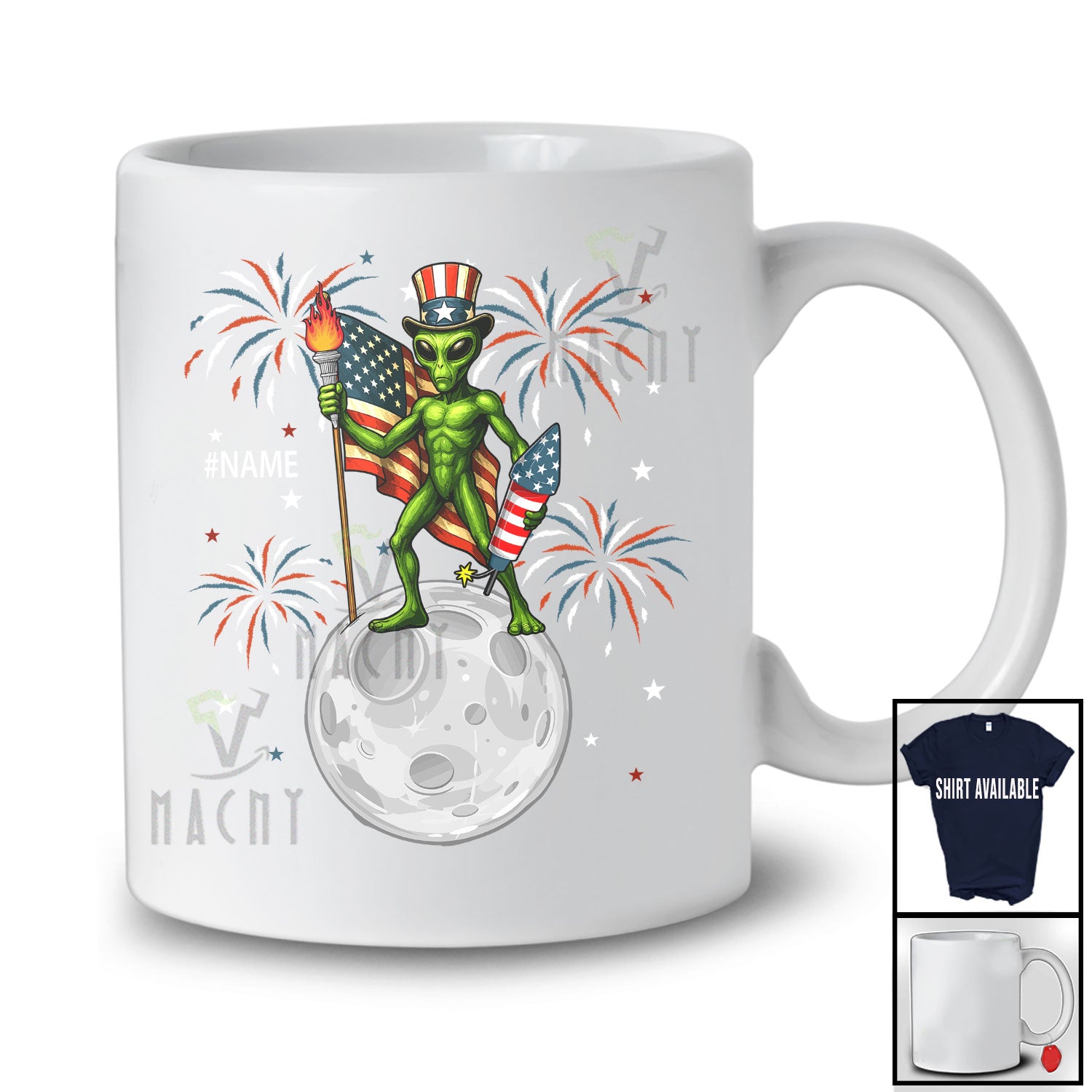 new MacnyStore - Personalized Custom Name Alien On Moon; Joyful 4th of July Alien Explore Planet Space T-Shirt – Macnystore