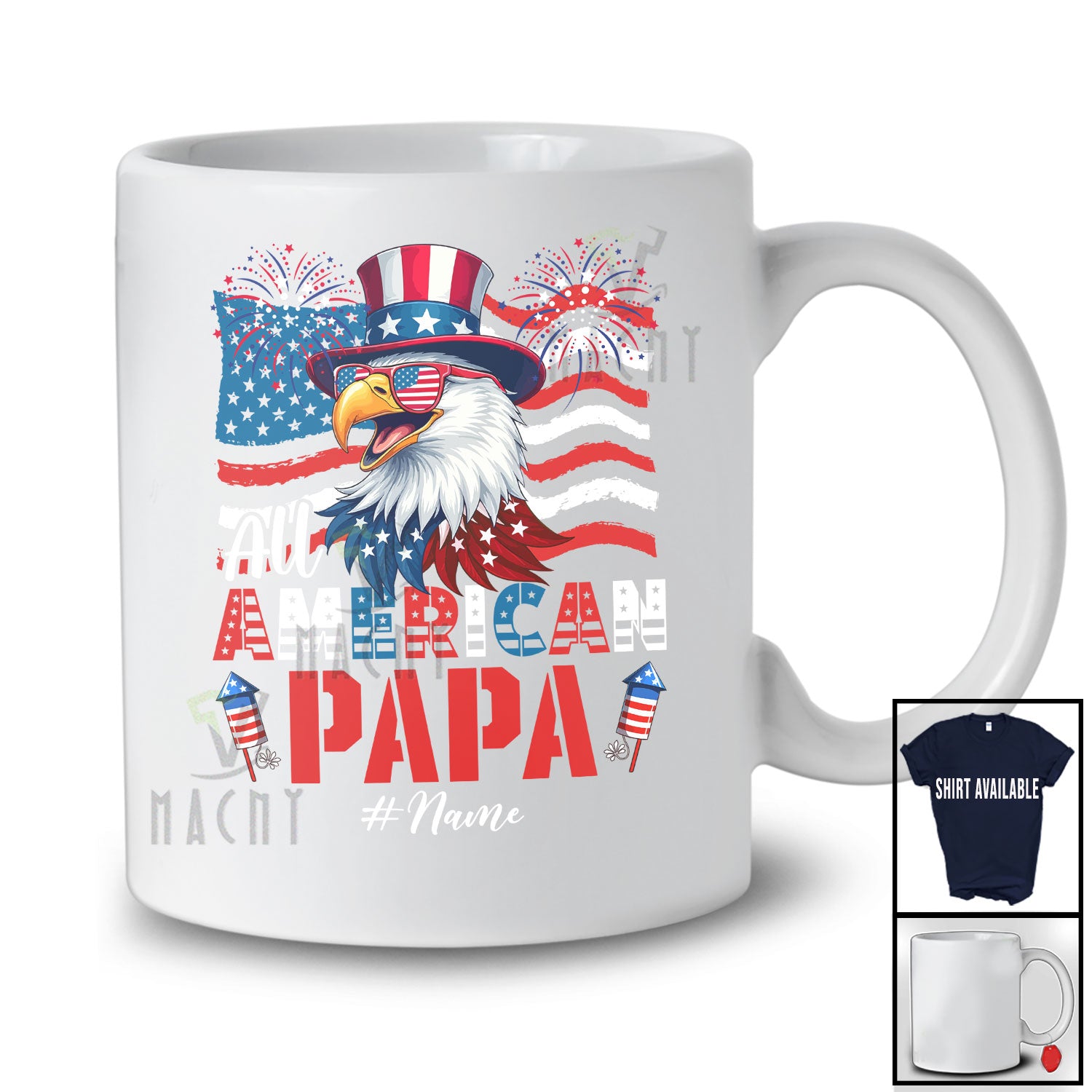 Personalized Custom Name All American Papa; Lovely 4th Of July US Flag Eagle; Patriotic Family T-Shirt. This cotton t-shirt is a durable staple product with a classic fit. One of the most popular items, it has a relaxed style made for everyday and casual wear.