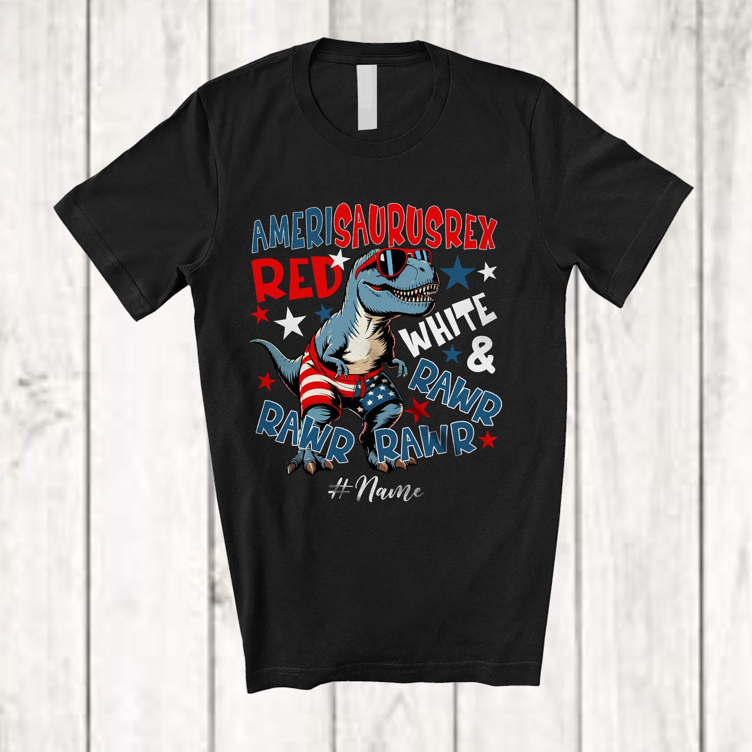 Personalized Custom Name Amerisaurus Rex Rawr; Humorous 4th Of July T-Rex; Patriotic T-Shirt
