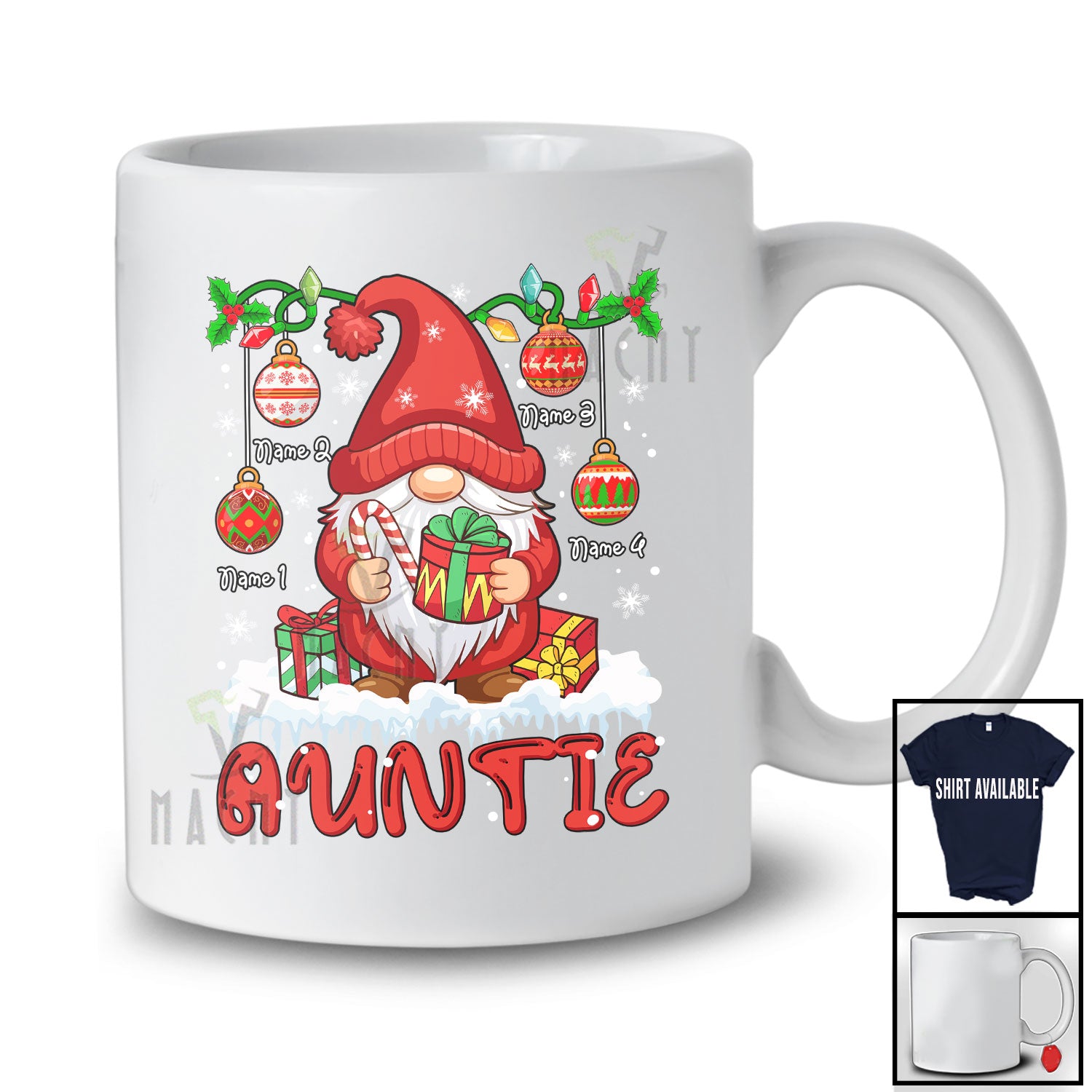 Personalized Custom Name Auntie; Adorable Christmas Gnome Snowing; Pajama Family T-Shirt. This cotton t-shirt is a durable staple product with a classic fit. One of the most popular items, it has a relaxed style made for everyday and casual wear.
