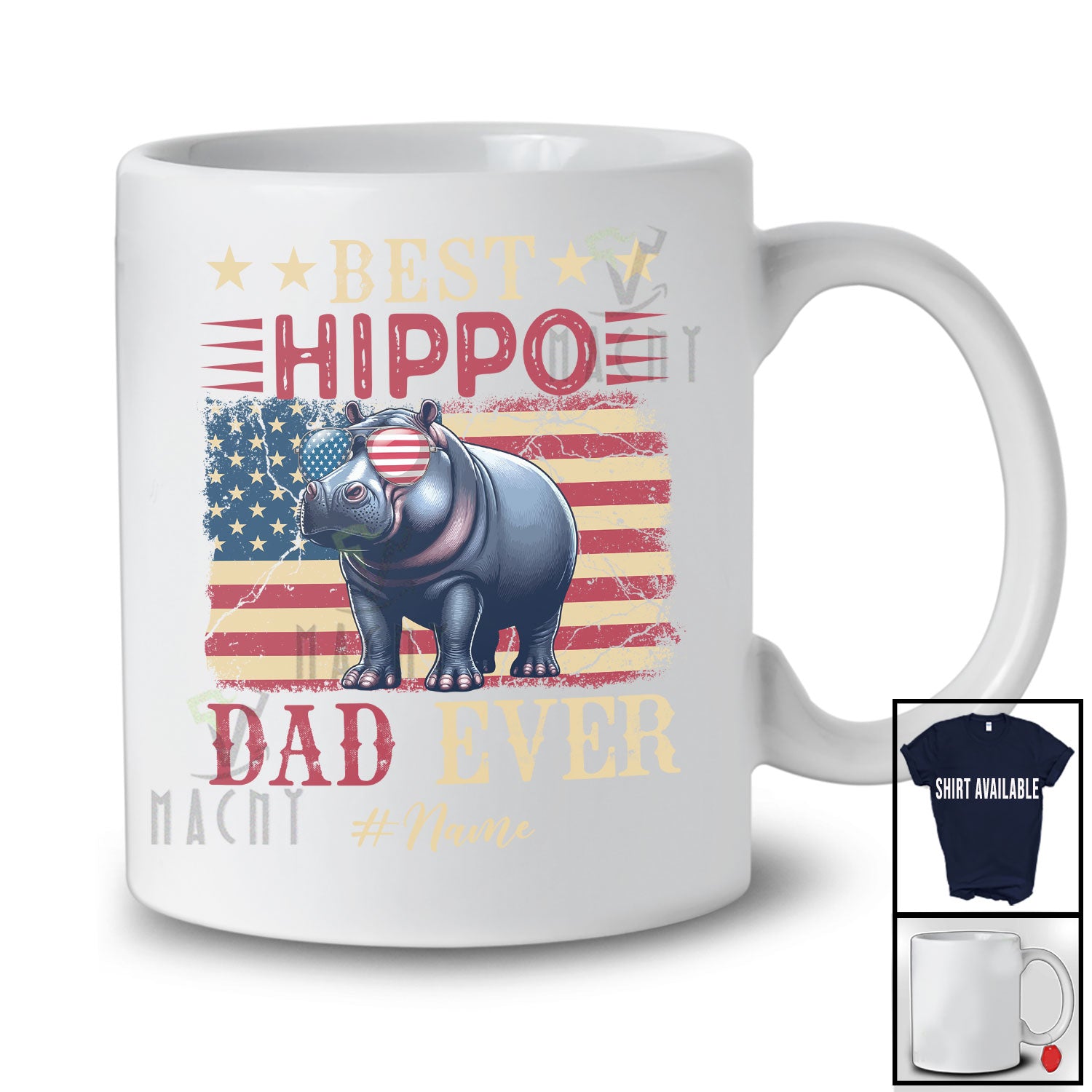 • Personalized Custom Name Best Hippo Dad Ever; Proud Father's Day 4th of July US Flag; Patriotic T-Shirt. This cotton t-shirt is a durable staple product with a classic fit. One of the most popular items, it has a relaxed style made for everyday and casual wear.