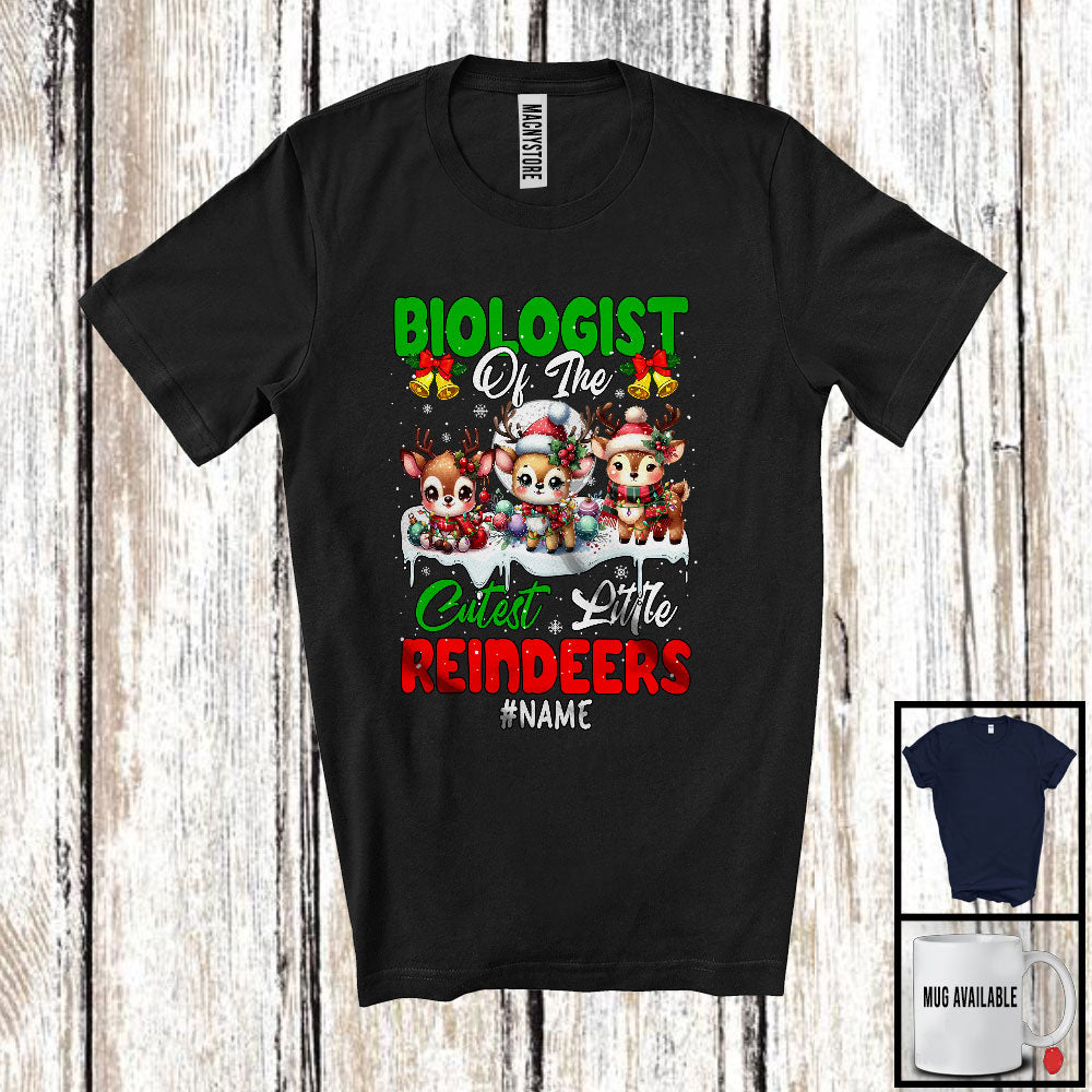 Personalized Custom Name Biologist Of Little Reindeers; Lovely Christmas 3 Cutest Reindeers T-Shirt