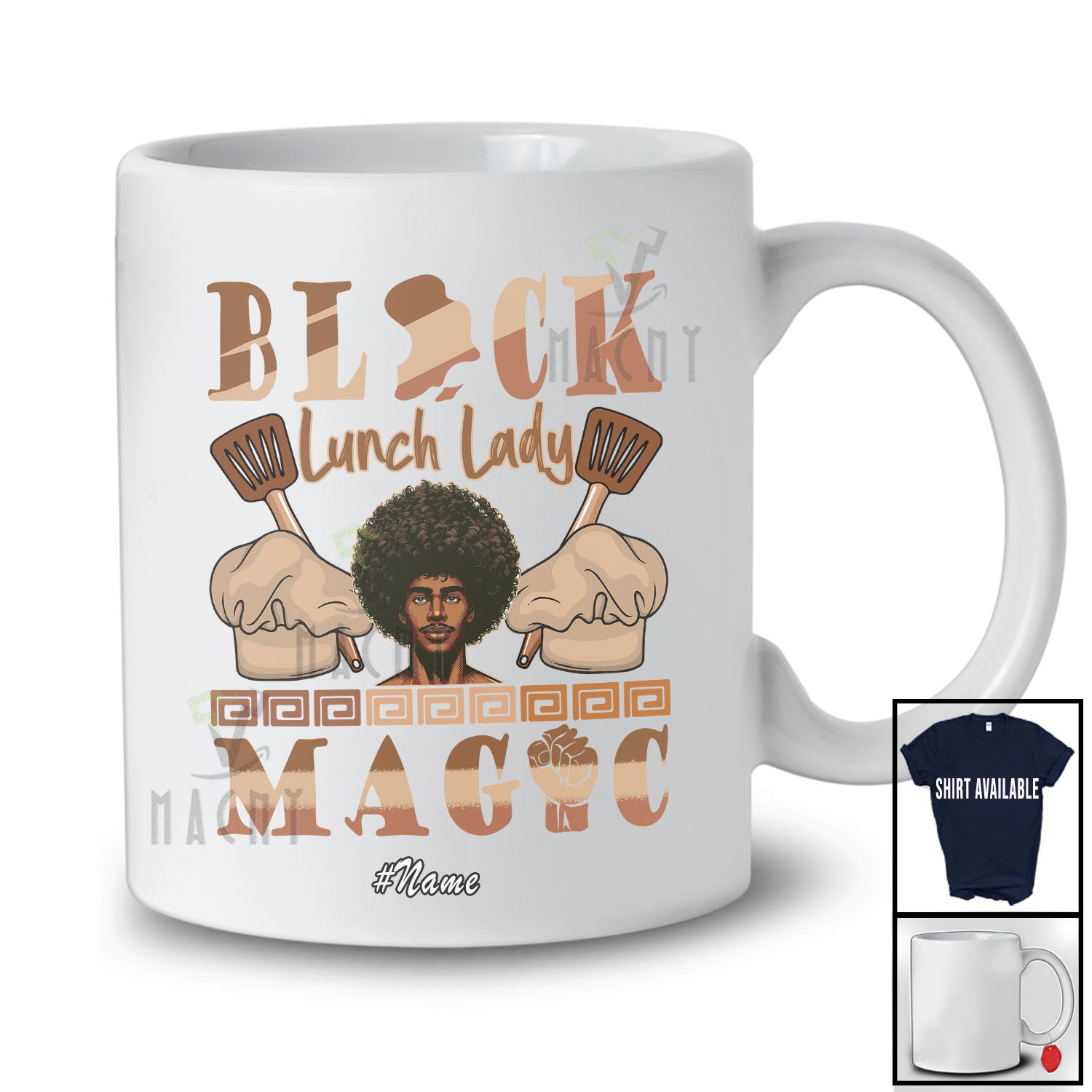 Personalized Custom Name Black Lunch Lady Magic; Proud Black History Month Afro Men Melanin T-Shirt